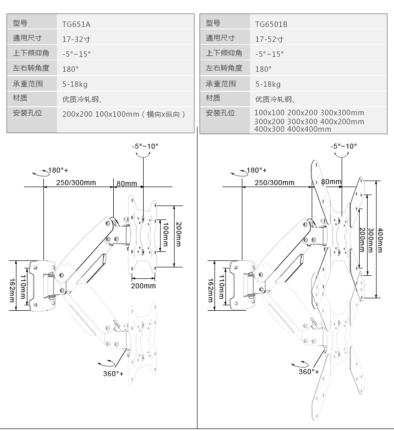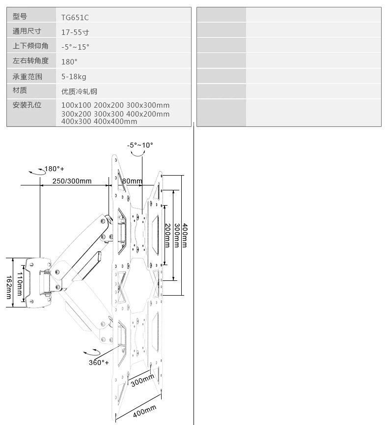 商品名称:DVHZ 智能液晶电视机挂架 壁挂支架通用 伸缩旋转高低悬停 TG651