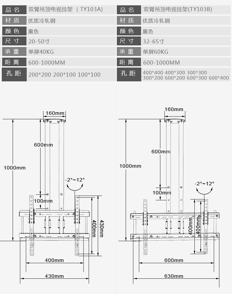 商品名称:DVHZ 吊顶26-65通用电视机挂架 顶挂支架伸缩旋转加强型 TY103