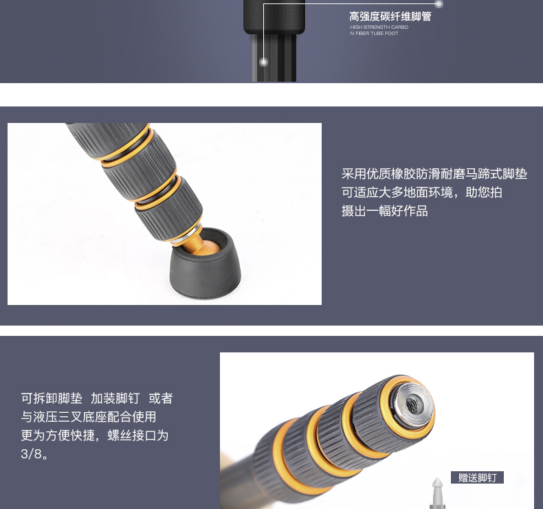 商品名称:轻装时代 单反相机单脚架液压云台摄影摄像机碳纤维独脚架 Q188C