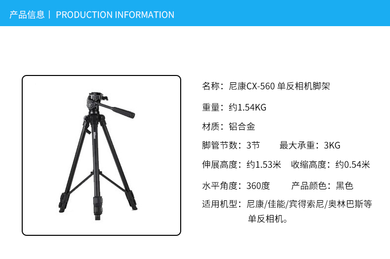 商品名称:尼康/Nikon 三脚架D7100 D7200 D5200 D5300尼康单反三脚架支架 CX-560