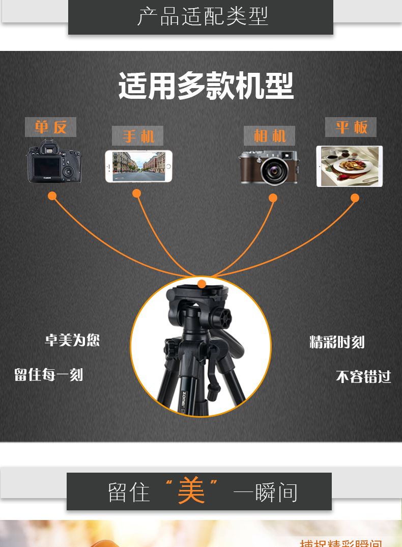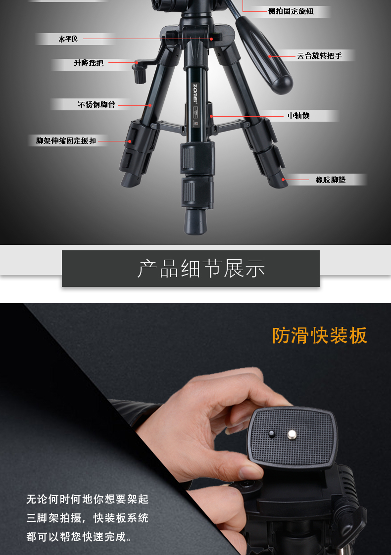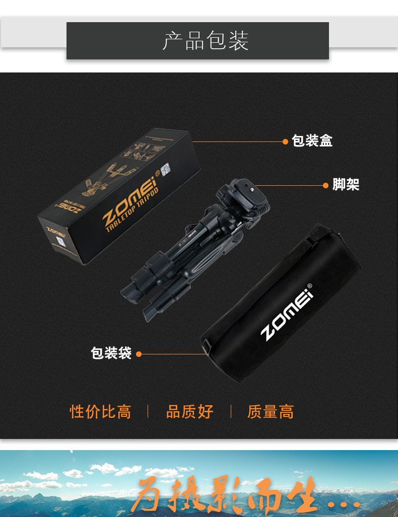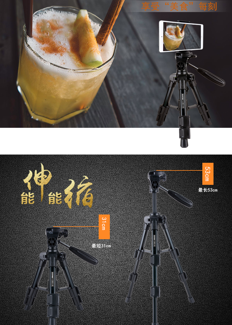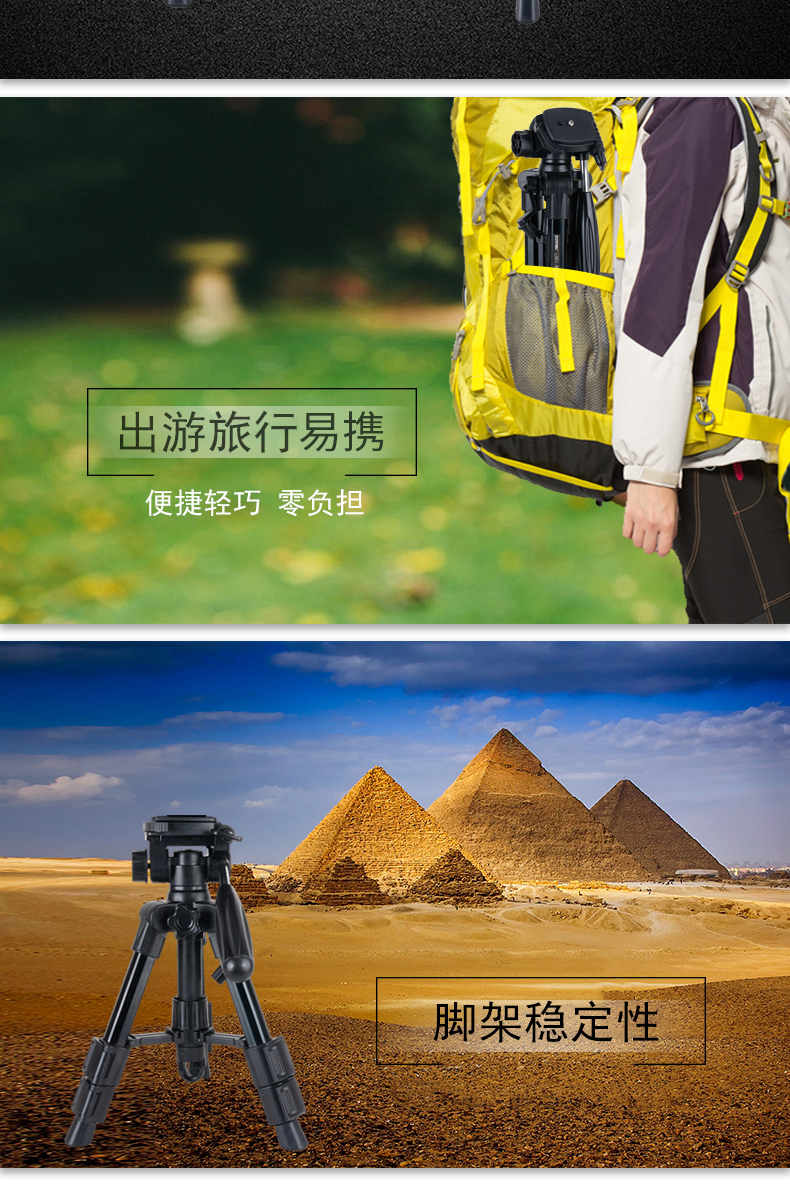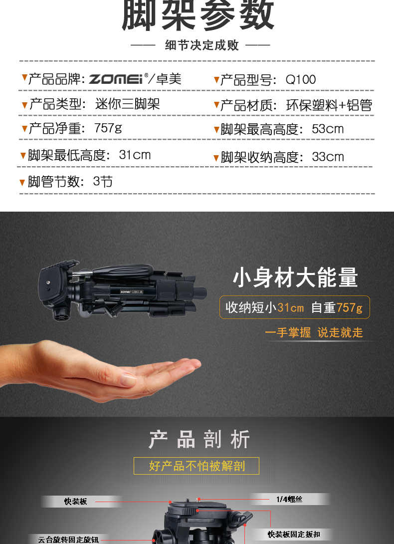 商品名称:Zomei/卓美 单反相机自拍抖音桌面主播三脚架 Q100