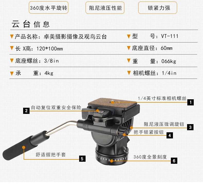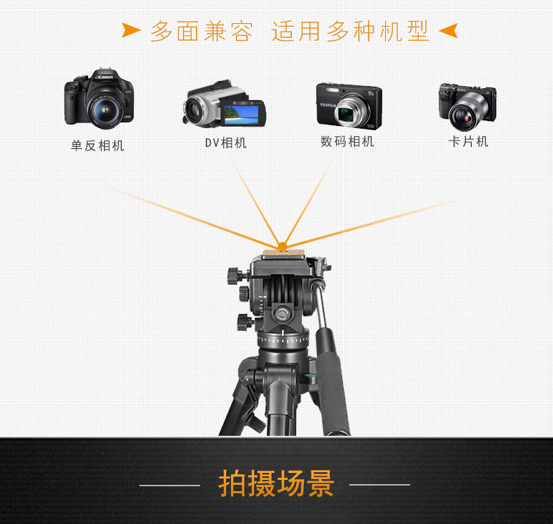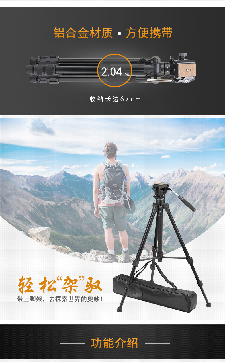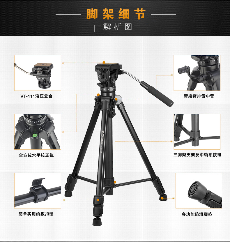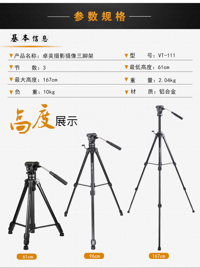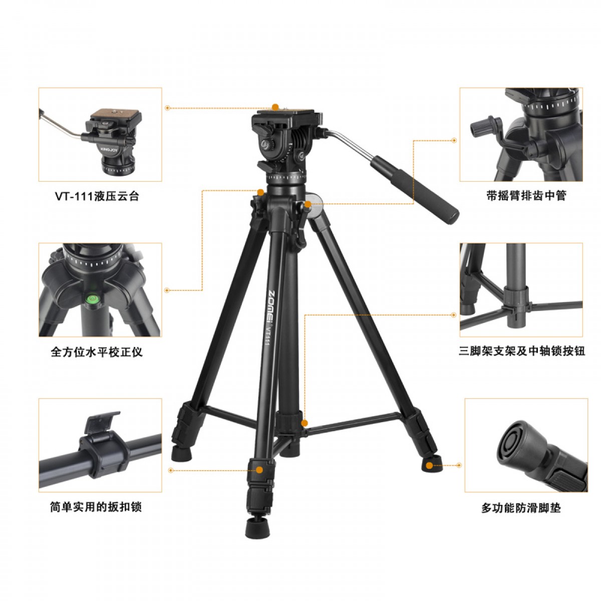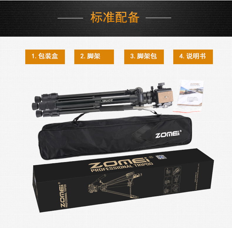 商品名称:Zomei/卓美 专业摄影三脚架微单反相机手机便携脚架照相三角架 VT111