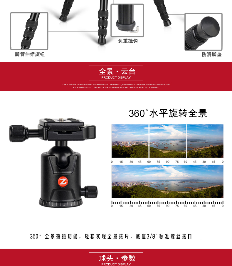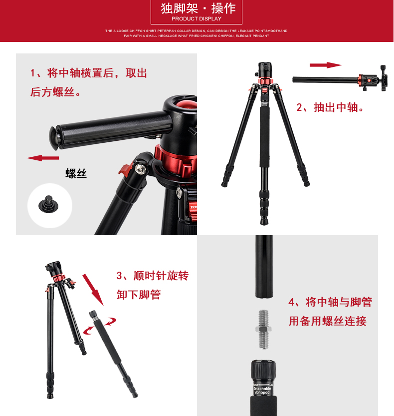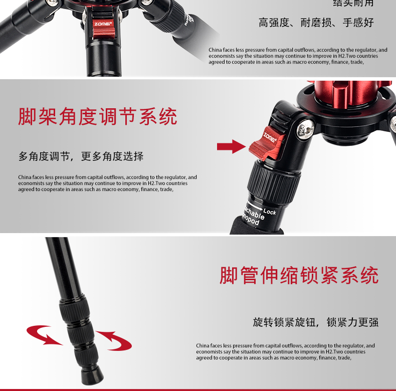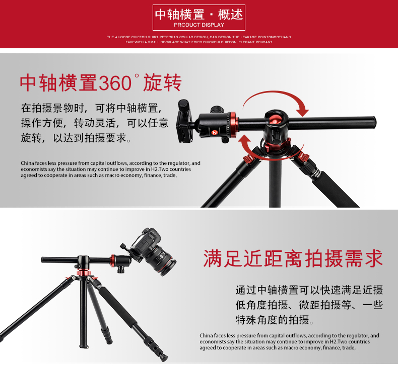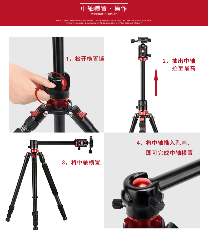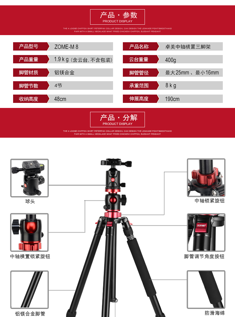 商品名称:Zomei/卓美 中轴横置三脚架佳能尼康照相机便携单反三角架支架横臂微矩 M8