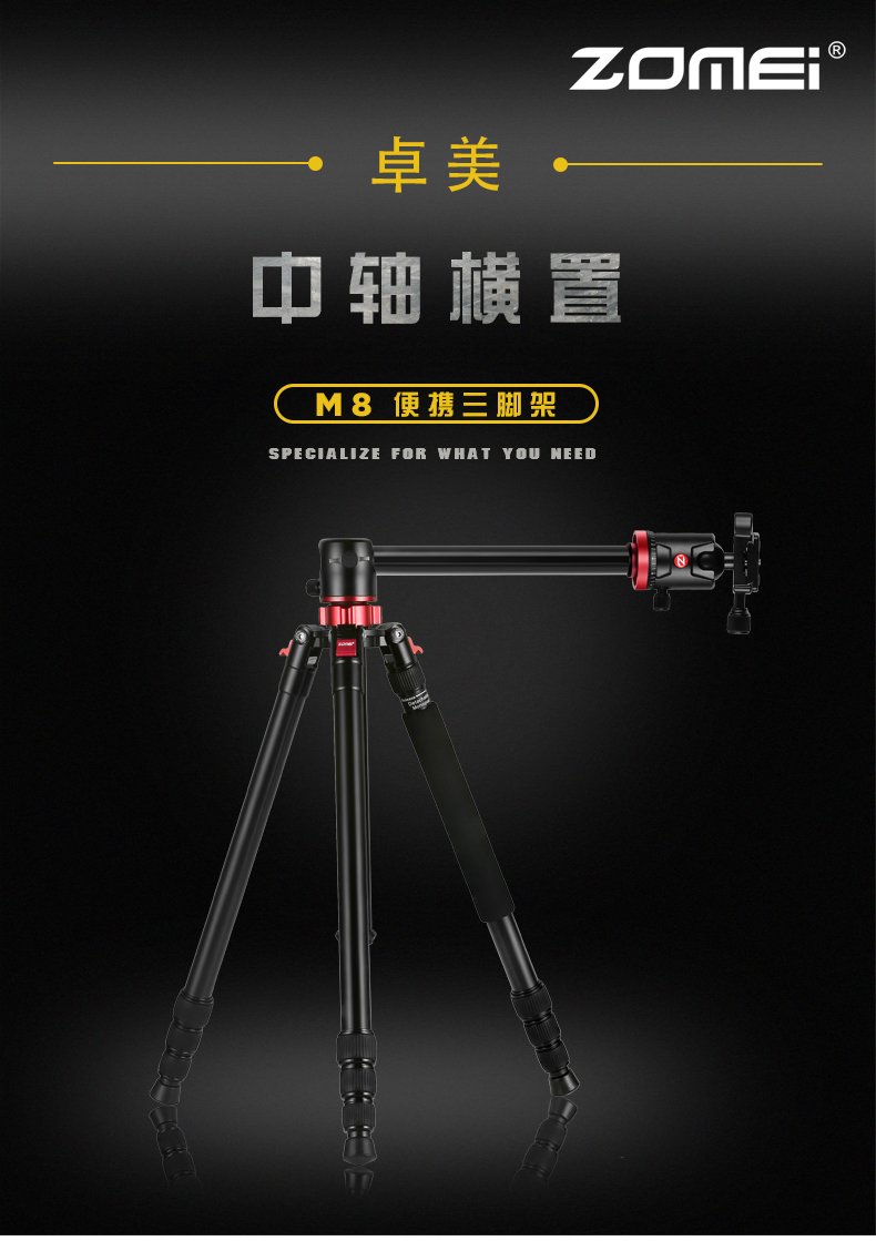 Zomei/卓美 中轴横置三脚架佳能尼康照相机便携单反三角架支架横臂微矩 M8
