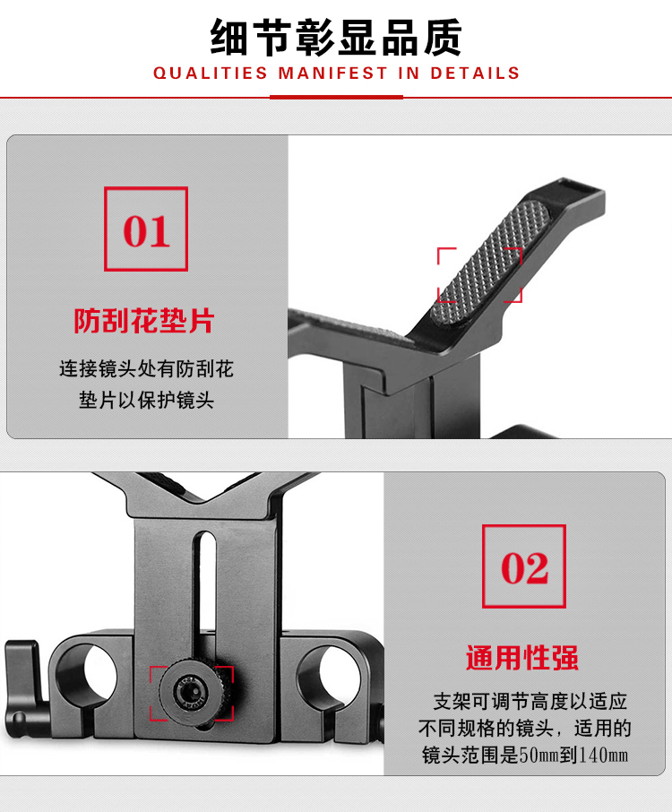 Smallrig/斯莫格 单反相机摄像套件长焦镜头支架15mm导管支撑架 1087