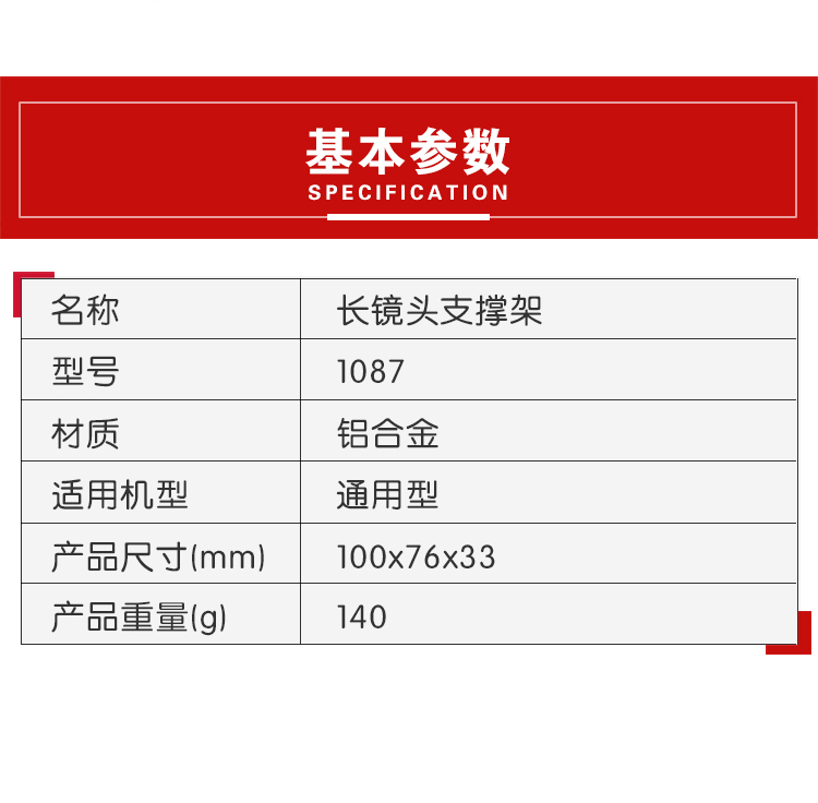 商品名称:Smallrig/斯莫格 单反相机摄像套件长焦镜头支架15mm导管支撑架 1087