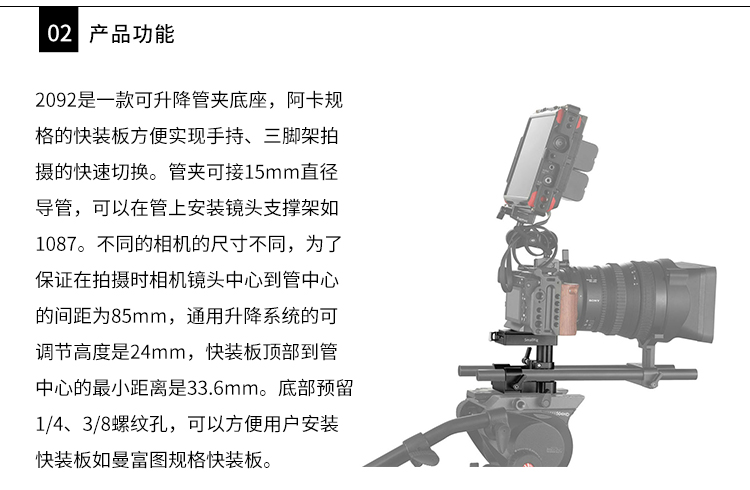 2、管夹可调节高度为24mm
