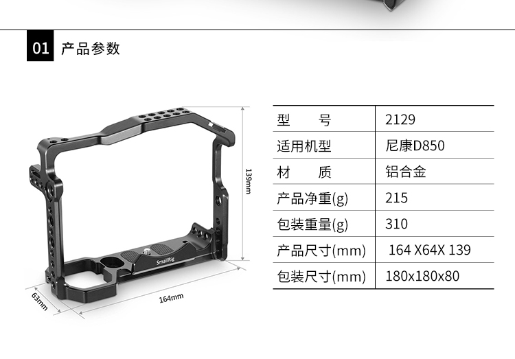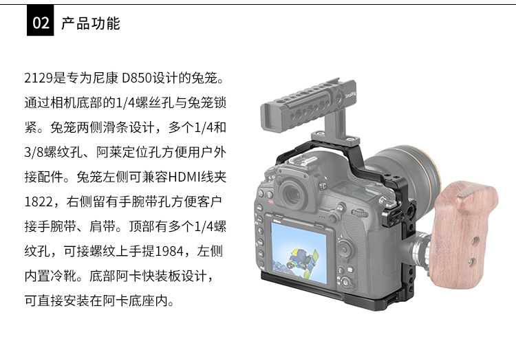 商品名称:Smallrig/斯莫格 摄像套件兔笼 for尼康D850 D810单反相机兔笼 2129