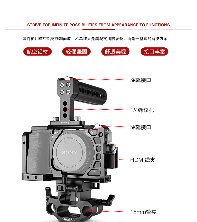 商品名称:斯莫格 单反摄像套件for索尼A6300 A6500微单相机兔笼 1986