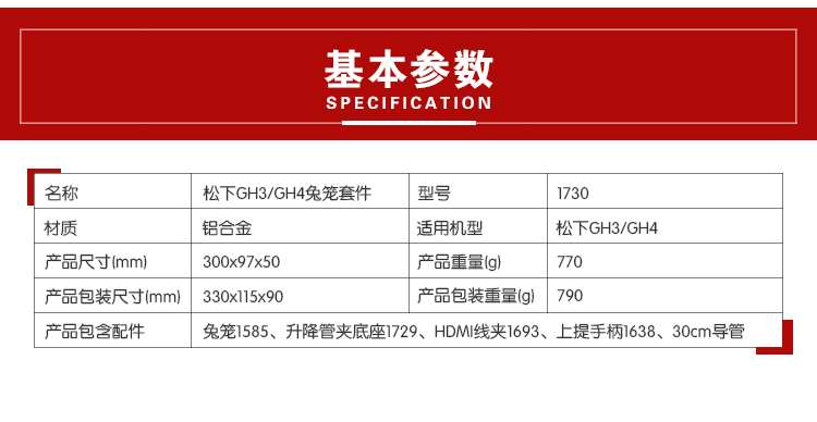 商品名称:斯莫格 单反相机摄像套件for松下GH4/GH3兔笼摄影摄像器材配件 1730