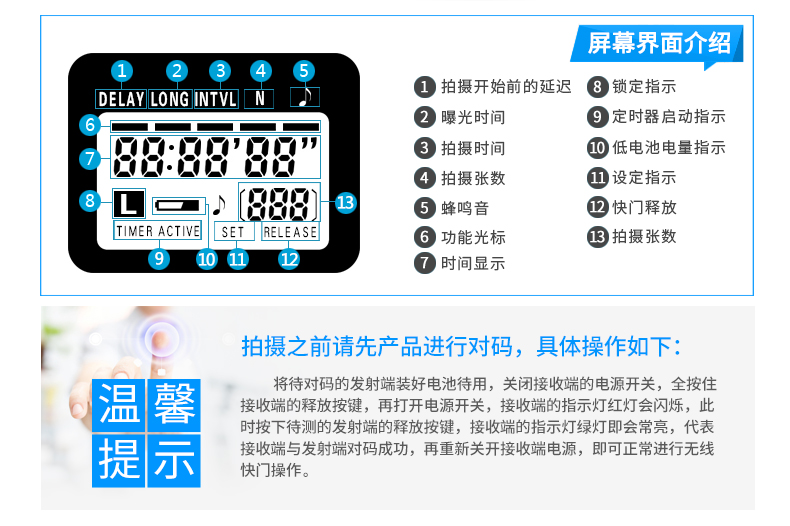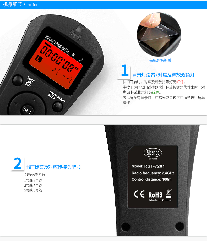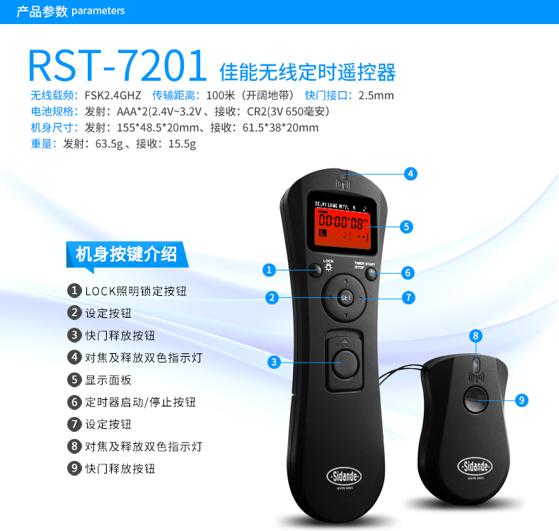 商品名称:斯丹德 无线定时快门线佳能5D3 6D 70D 60D延时索尼单反相机遥控器 RST-7201