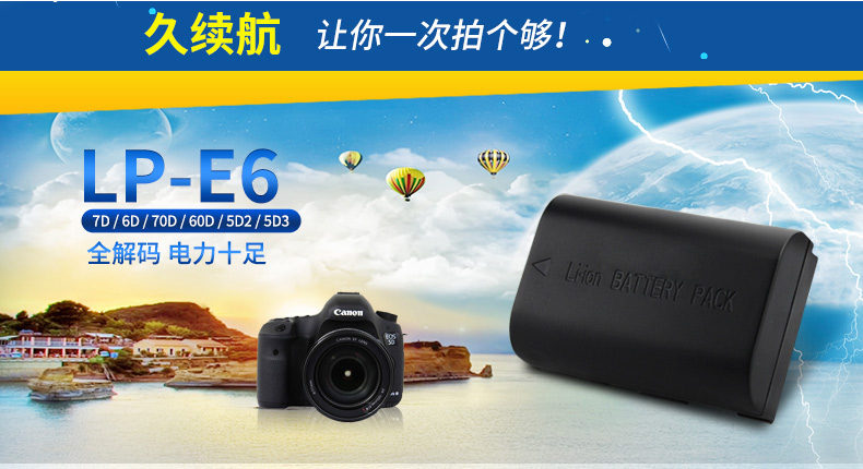 斯丹德 LP-E6 lpe6佳能单反相机5d2 5D3 6D 7D 60D 70D非原装电池