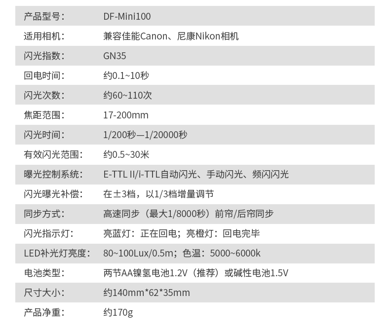 商品名称:斯丹德 Mini100微单for佳能尼康高速同步外置单反闪光灯迷你