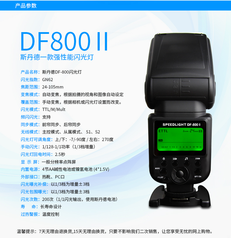 商品名称:斯丹德 高速同步TTL佳能机顶闪光灯单反相机 DF-800