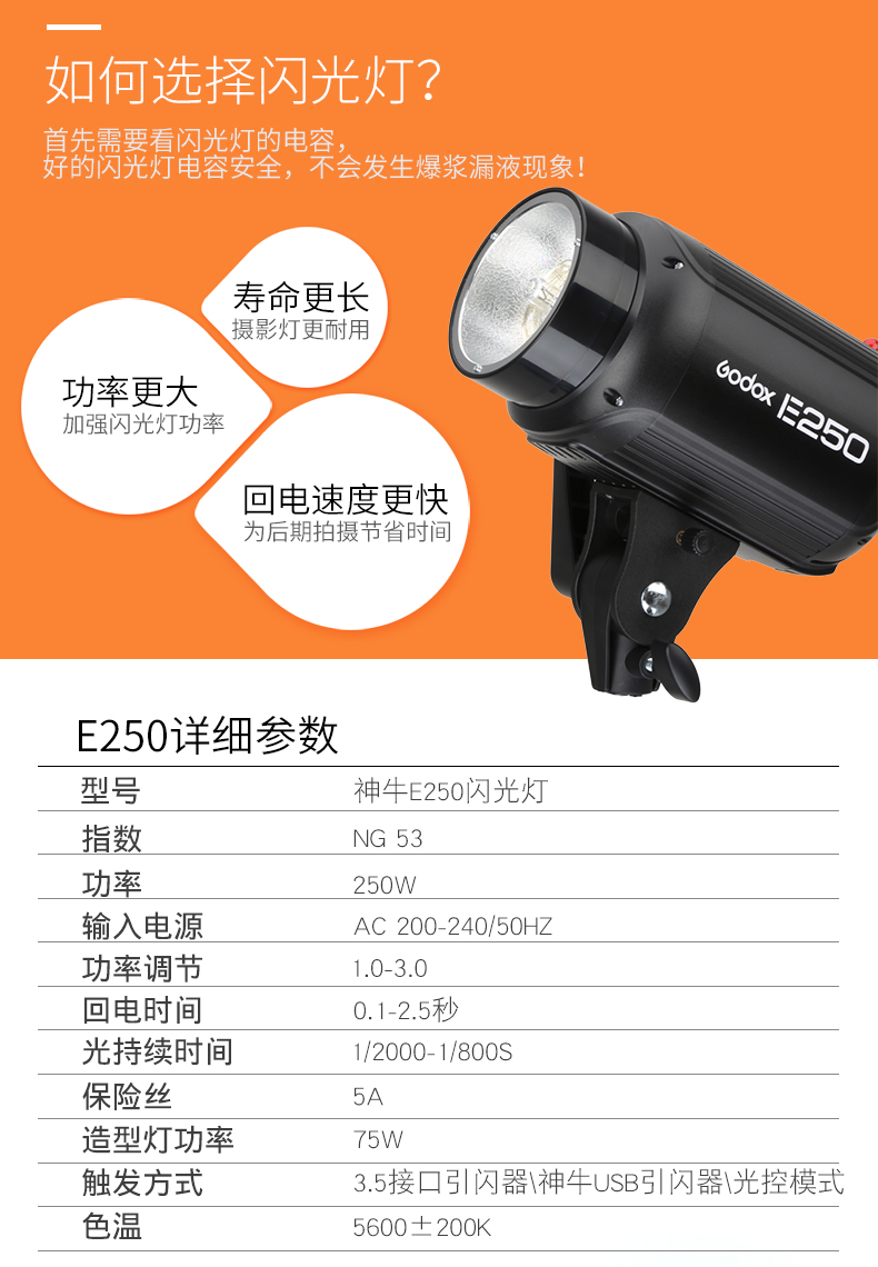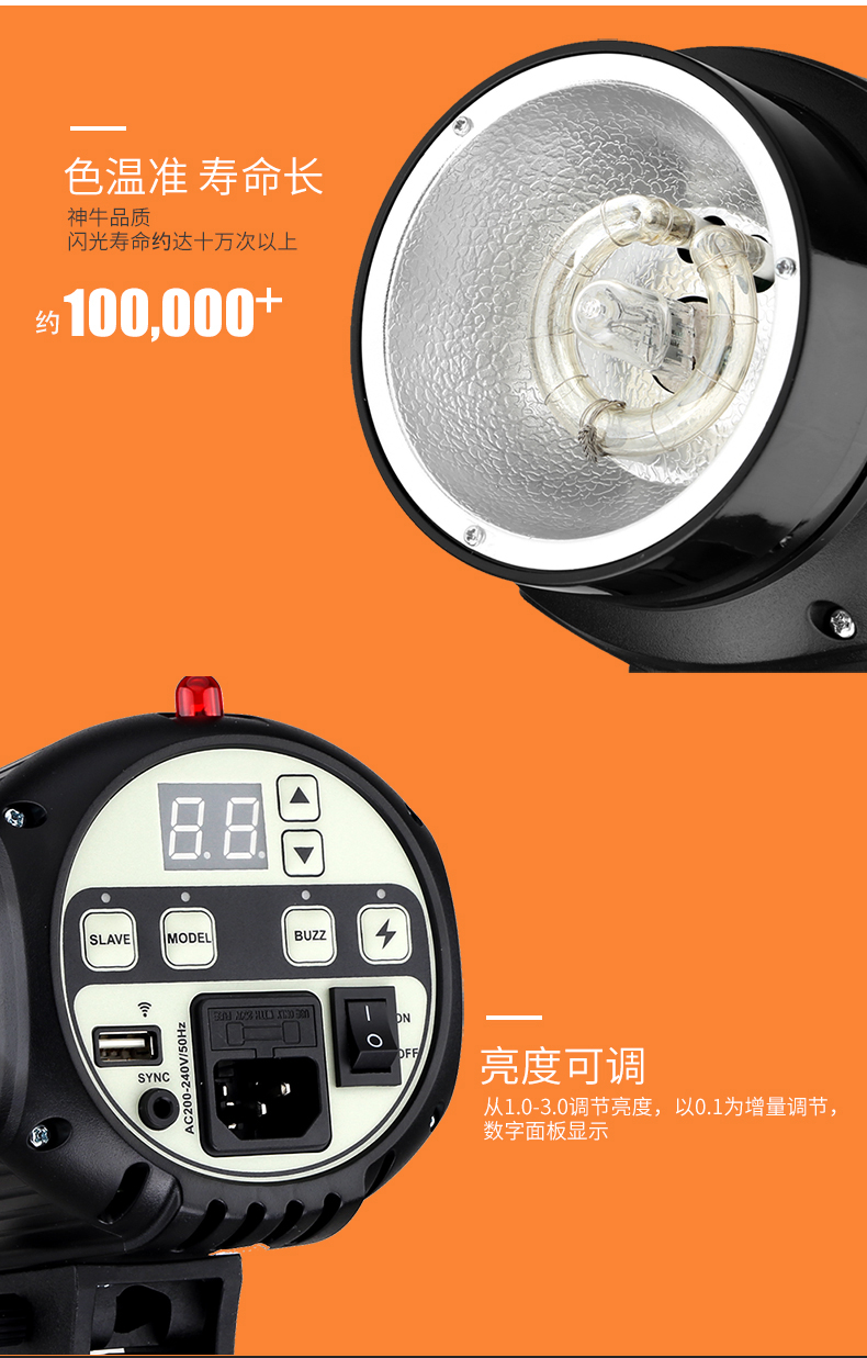 商品名称:神牛 影室闪光灯影棚灯摄影灯柔光摄影闪光灯工作室设备拍照 E250w