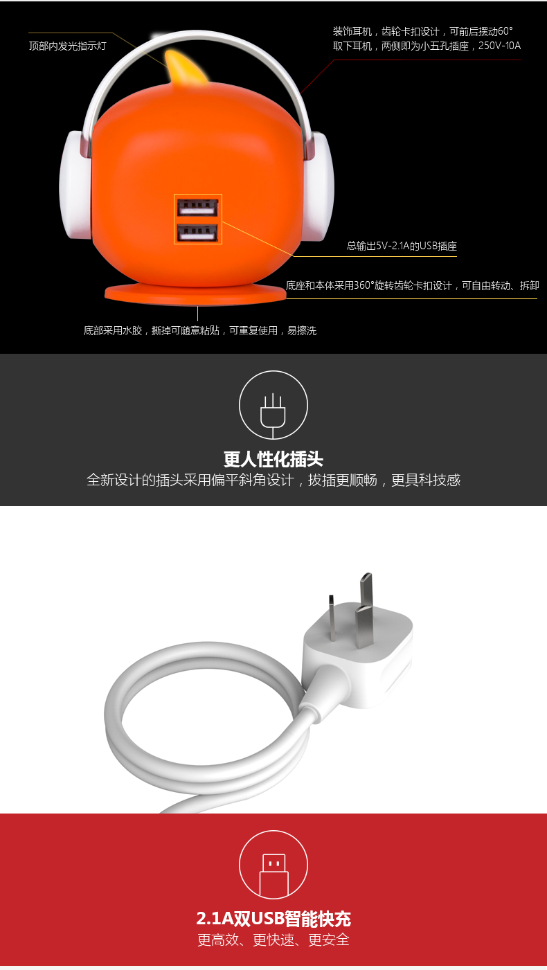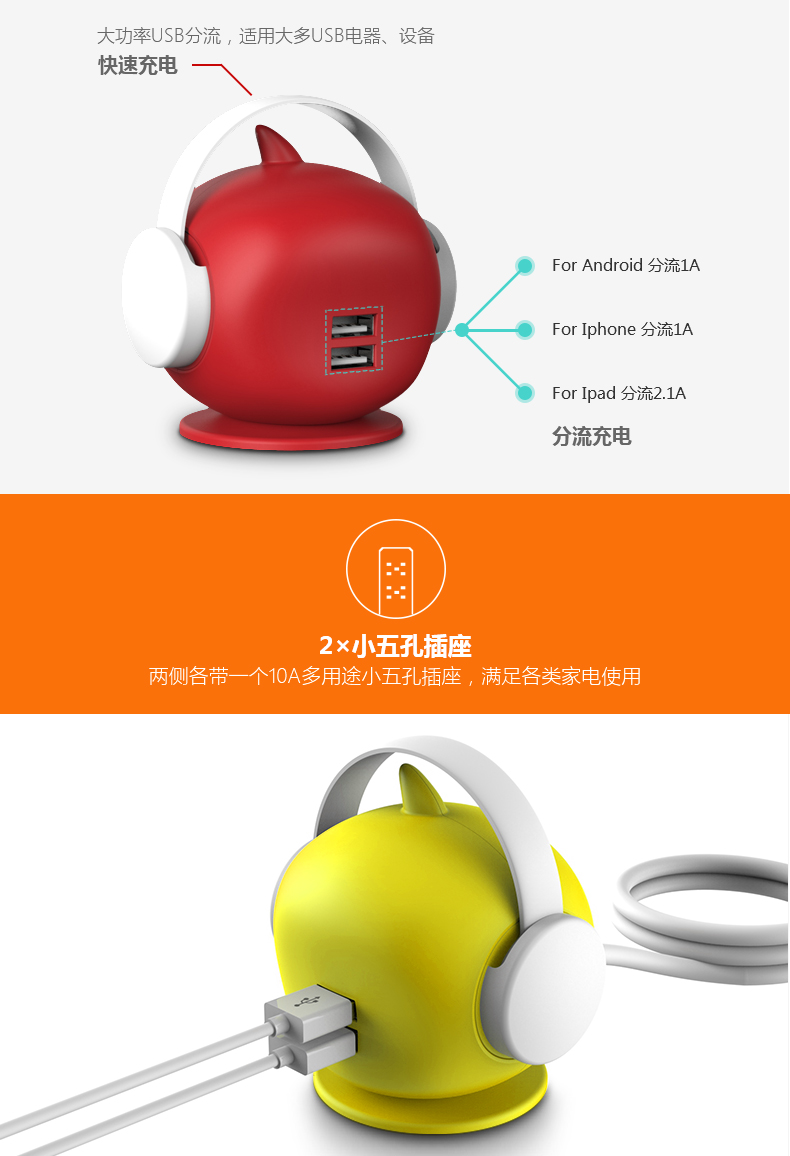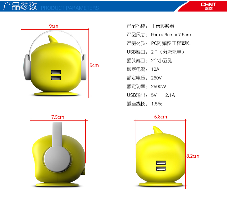 商品名称:正泰 阿里智能时尚萌排插 2.1A 双USB智能排插接线板 NEAE3-0010U-1.5-1