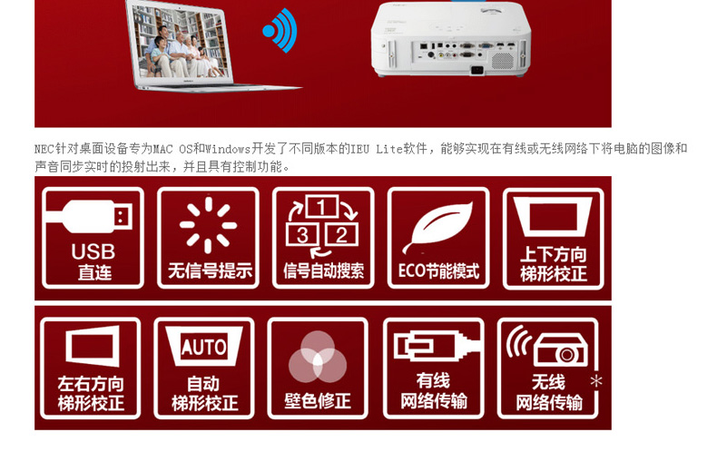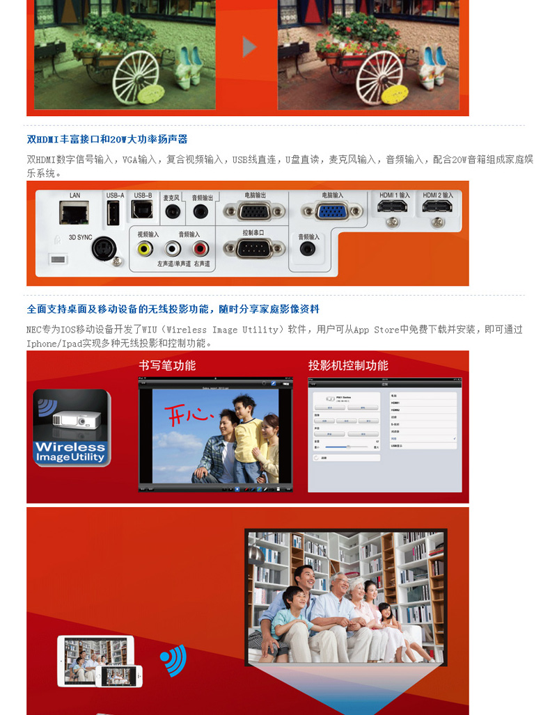 商品名称:NEC 短焦1080P高清蓝光3D投影仪投影机家庭影院 NP-M323HS+