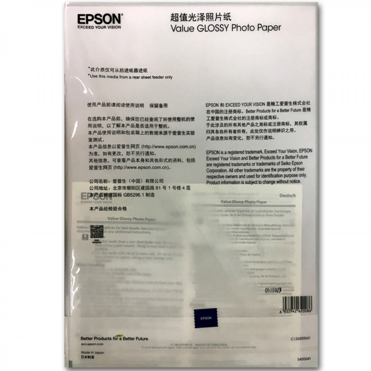 商品名称:爱普生 超值光泽照片纸A4 50张/包 色彩鲜艳 健康环保