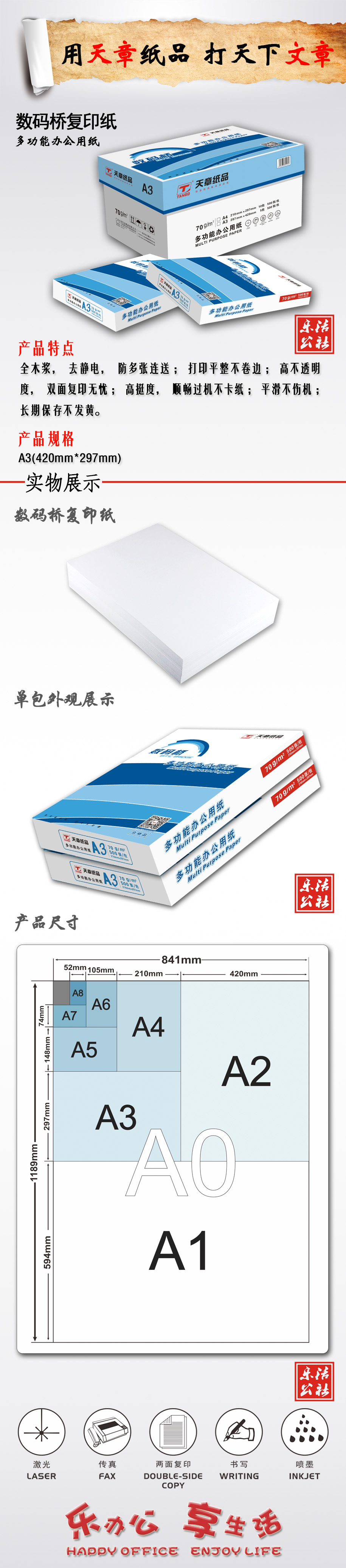 商品名称:天章 数码桥 A4复印纸双面a4办公用纸整箱