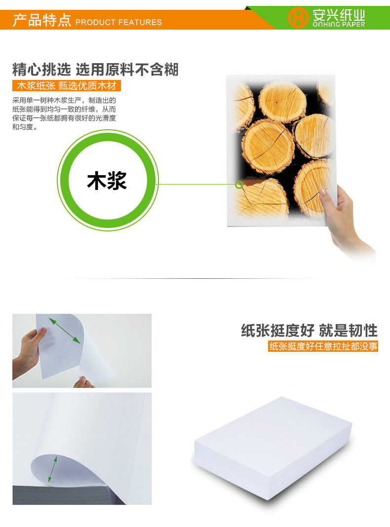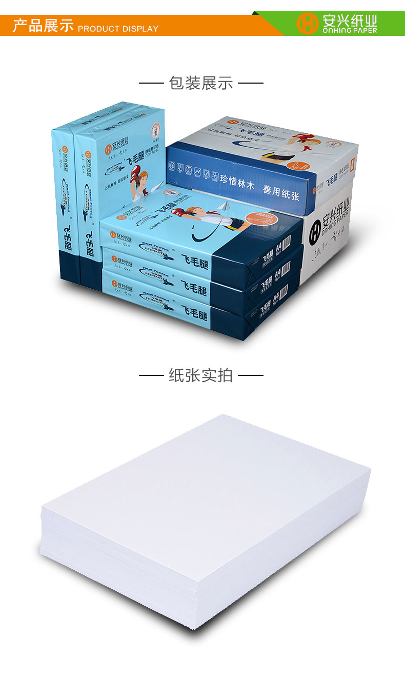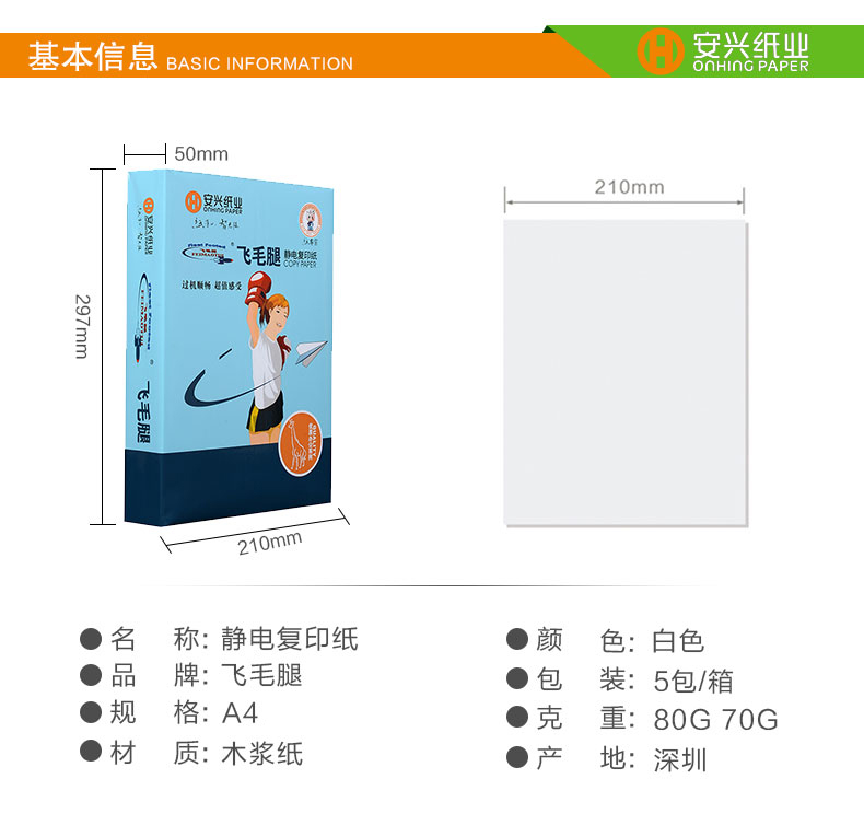 商品名称:安兴纸业 飞毛腿复印纸a4纸打印70g纸500张白色80g克复印纸办公文具