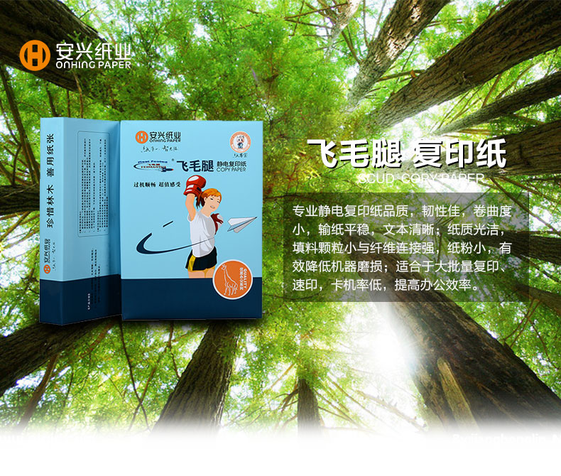 安兴纸业 飞毛腿复印纸a4纸打印70g纸500张白色80g克复印纸办公文具