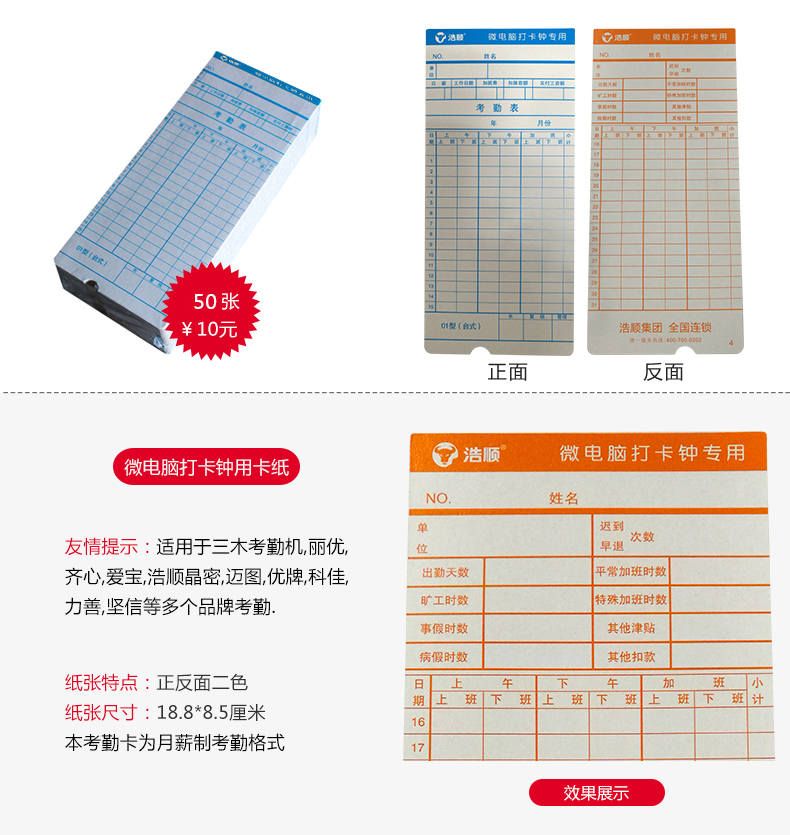 商品名称:浩顺 得力齐心科密爱宝打卡钟考勤卡纸微电脑打卡器通用纸卡