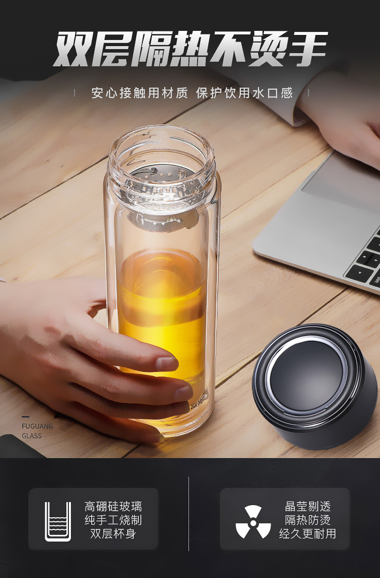 商品名称:富光 玻璃杯水杯男女士双层加厚便携家用泡茶过滤喝水茶杯创意杯子 FB181040-350