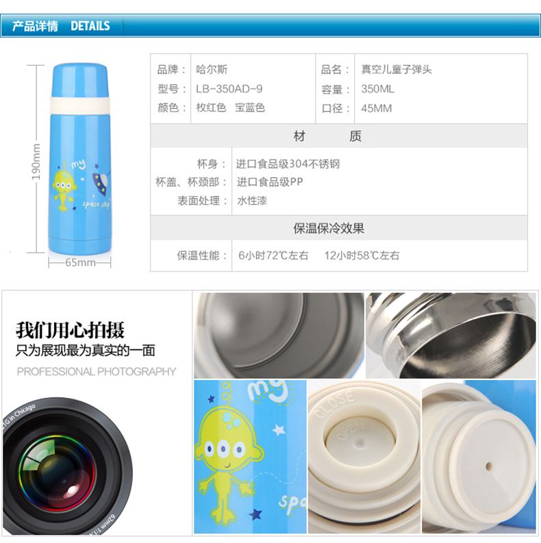 商品名称:哈尔斯 保温杯304不锈钢儿童男女小水杯可爱便携学生杯子350ML刻字 LB-350AD-9