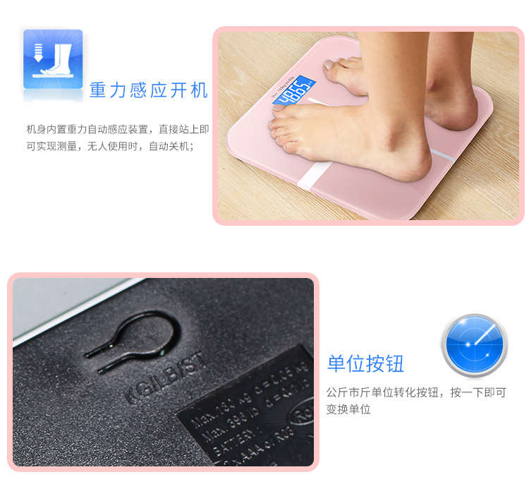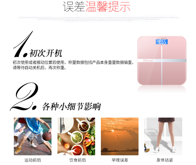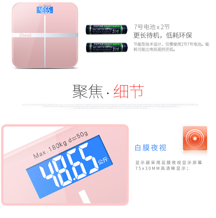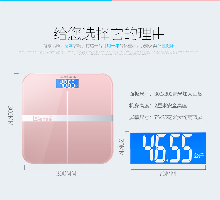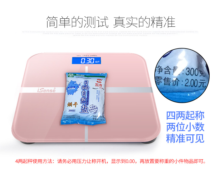 商品名称:iSense 家用精准电子称人体秤成人体重秤女宿舍小巧电池款减肥称重计器