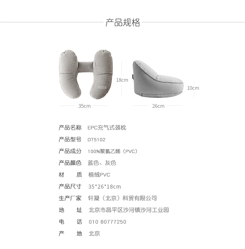 商品名称:EPC H型枕旅行充气枕头户外旅游三宝午睡枕便携飞机护颈吹气腰靠