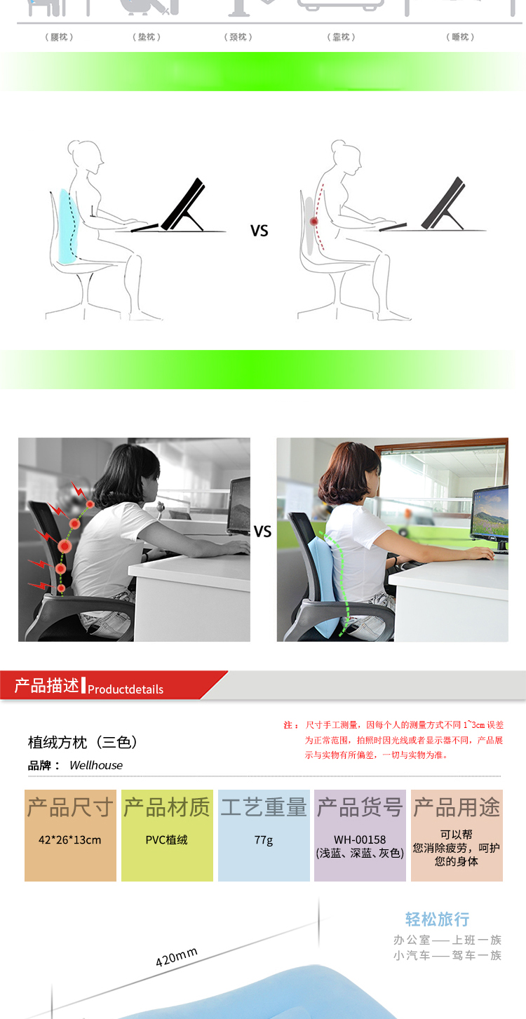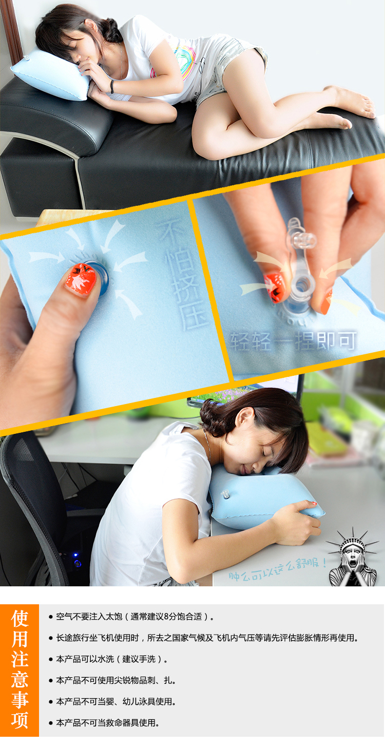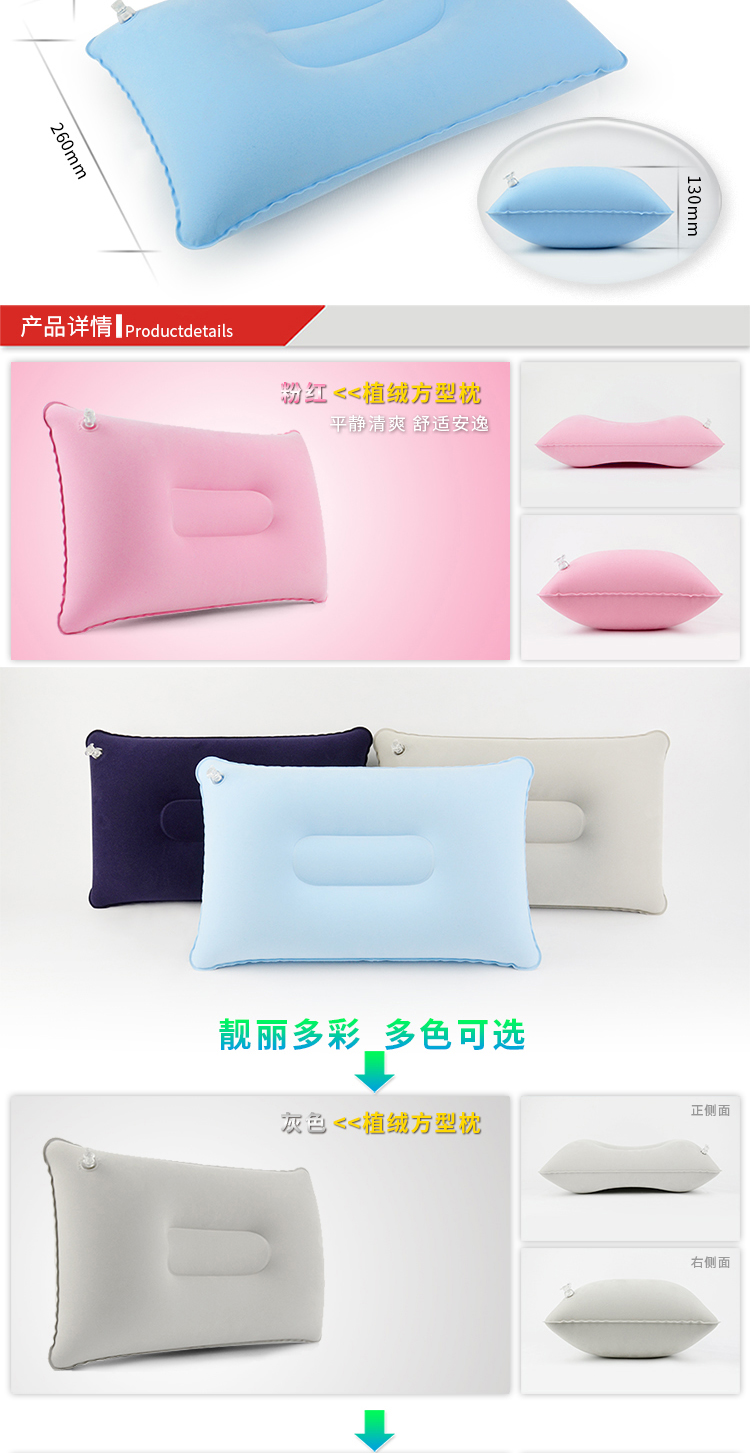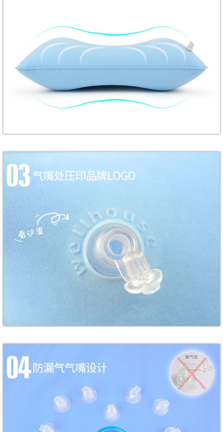 商品名称:Wellhouse 方型枕头旅行出差便携快速充气上班办公室午睡舒适枕吹气