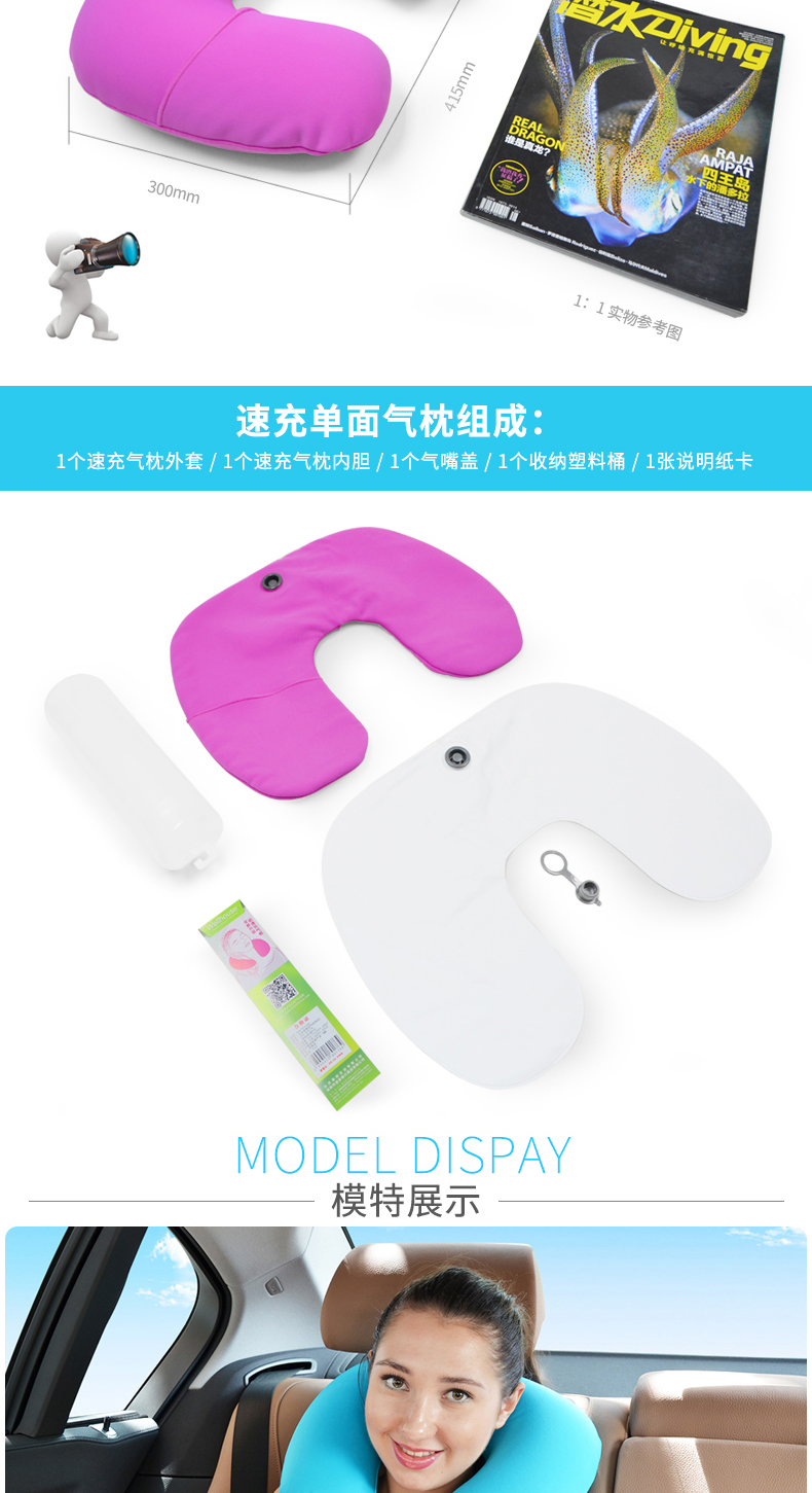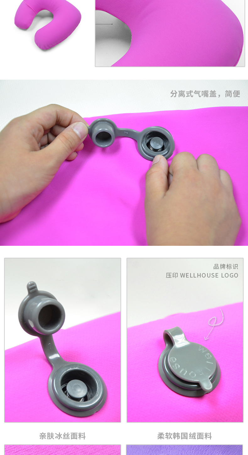 商品名称:Wellhouse 充气枕U型枕舒适办公室出差快速充气便携吹气颈椎护颈枕飞机枕脖