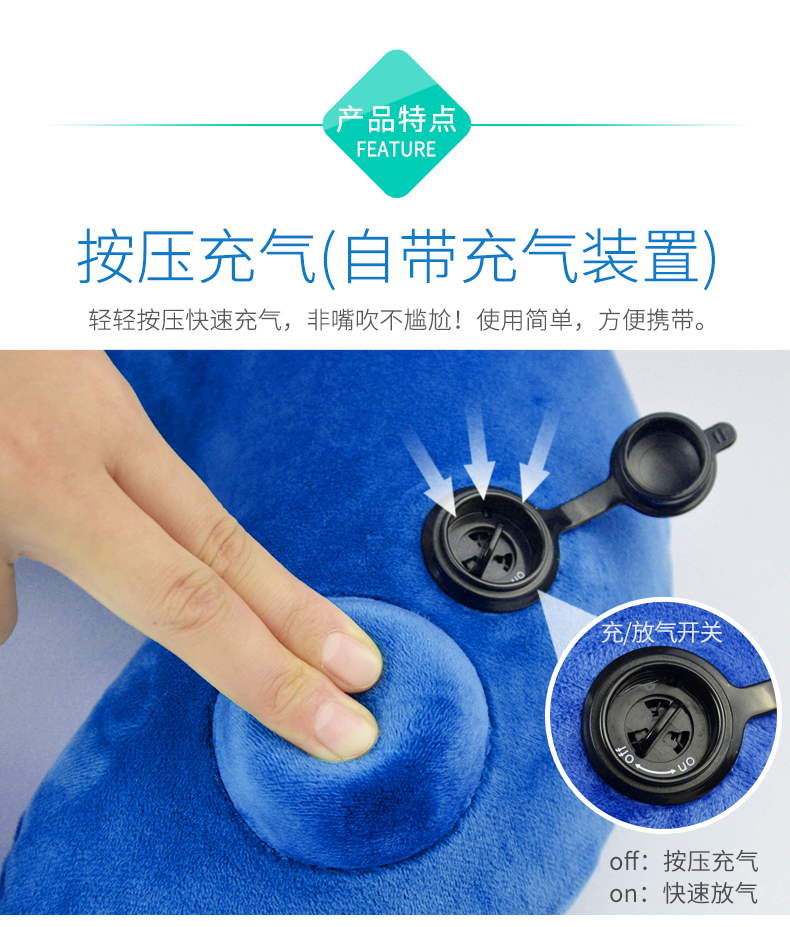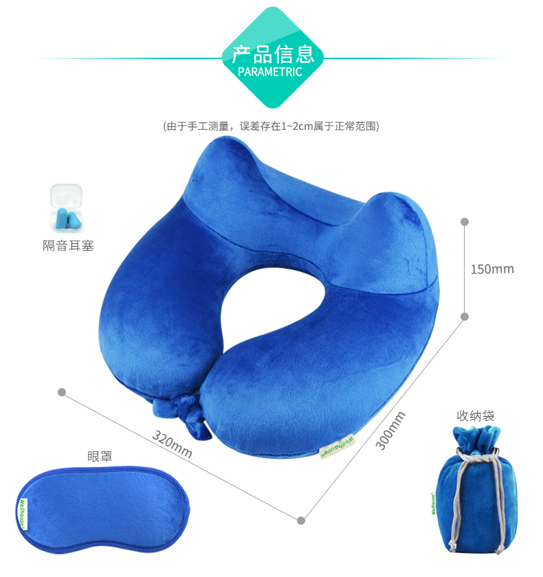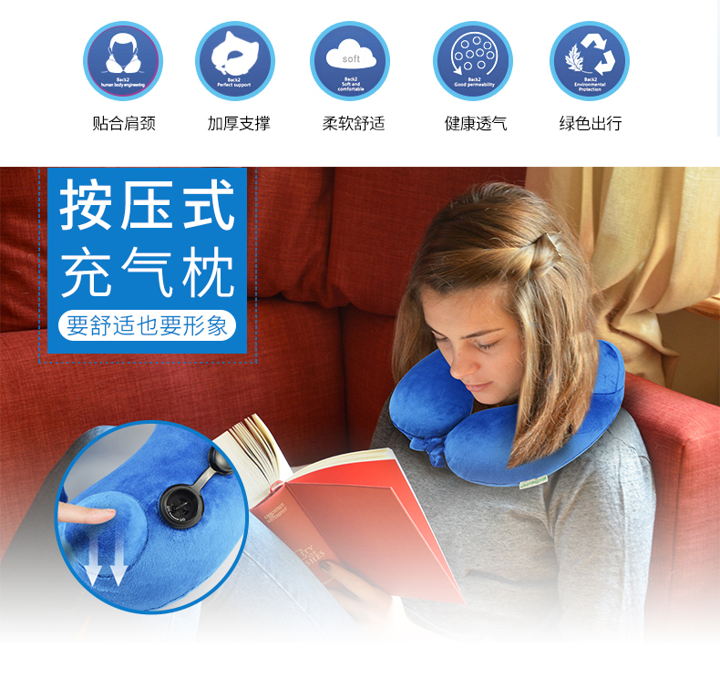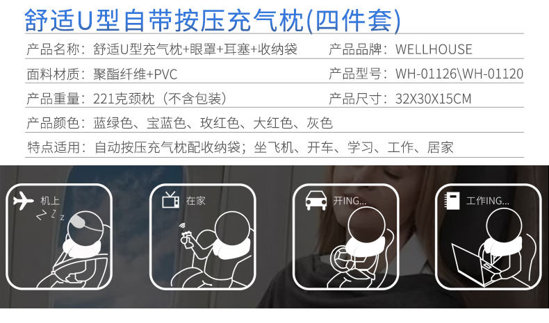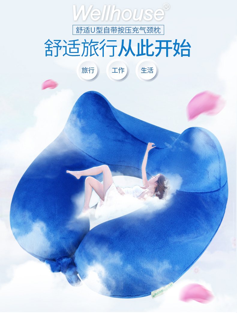 商品名称:Wellhouse 舒适U型枕颈椎保健枕脖子午睡午休飞机旅行u形枕自动充气枕单-双