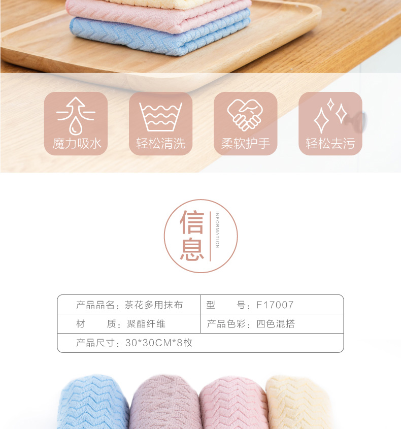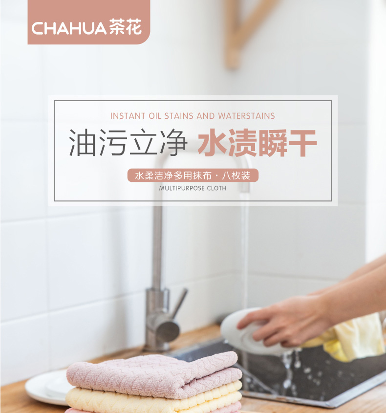 商品名称:茶花 抹布厨房家务清洁布基本不掉毛不沾油吸水洗碗巾擦桌子8条