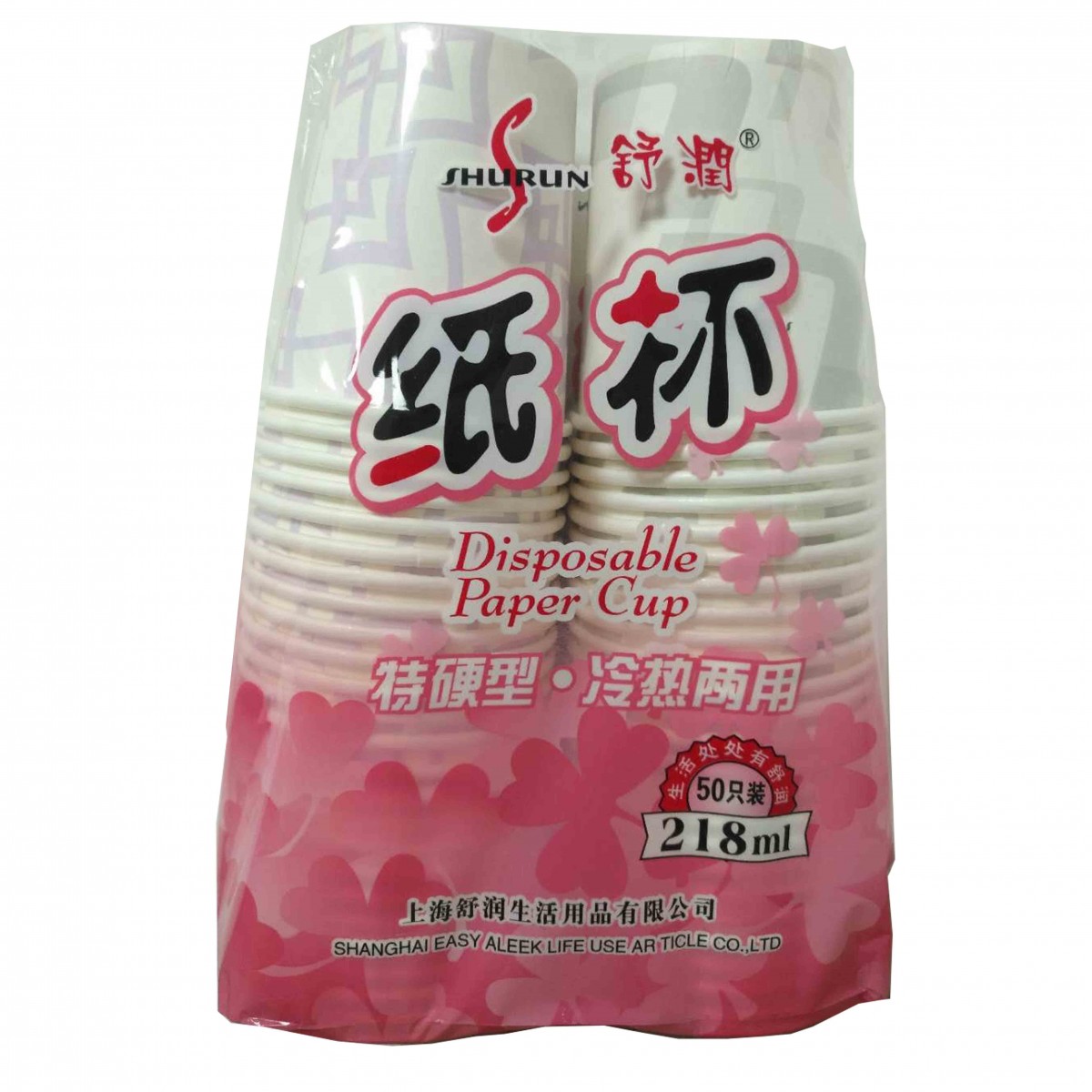 舒润 特硬型纸杯(218ml)*50白底型花图案颜色随机