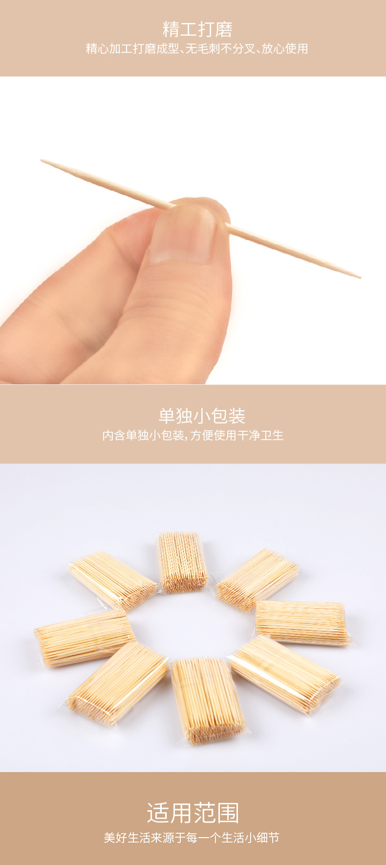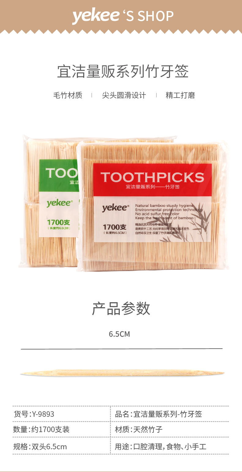 商品名称:宜洁 双头牙签1700只卫生竹签酒店家用袋装竹牙签一次性牙签8小包