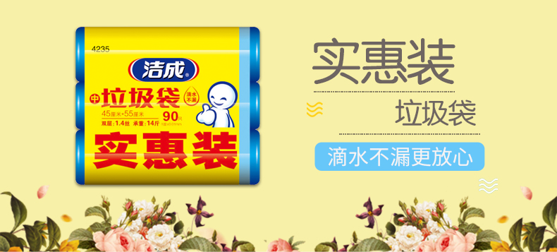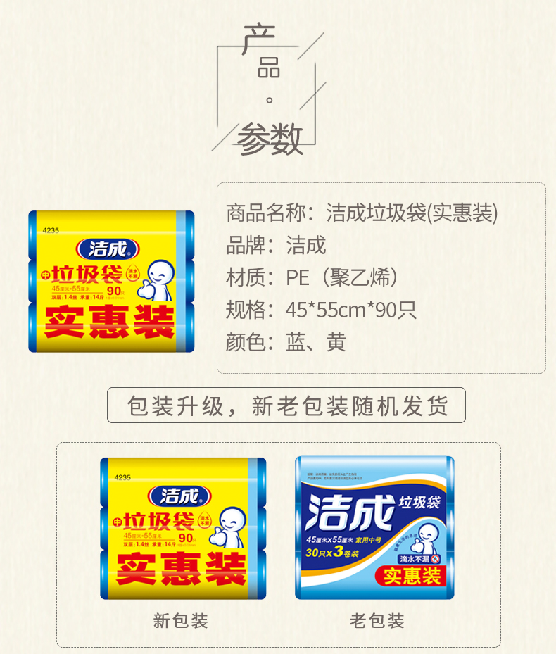 商品名称:洁成 垃圾袋家用中号塑料袋新料厨房卫生间加厚45*55*450只