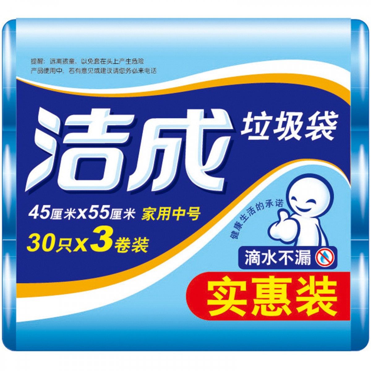 商品名称:洁成 一次性垃圾袋加厚家用中号实惠装塑料桶袋子90只