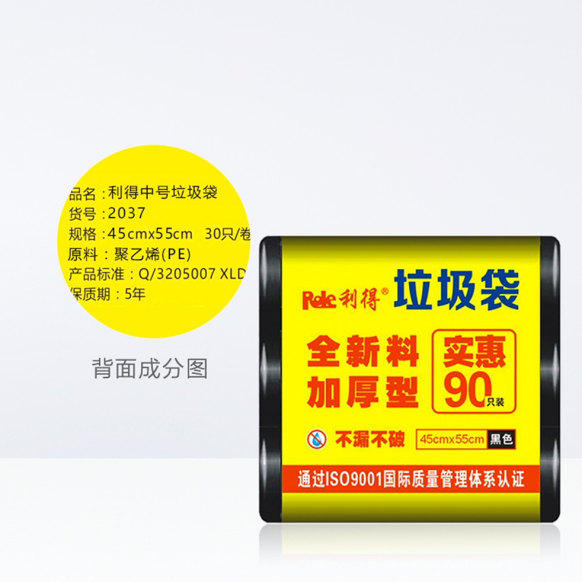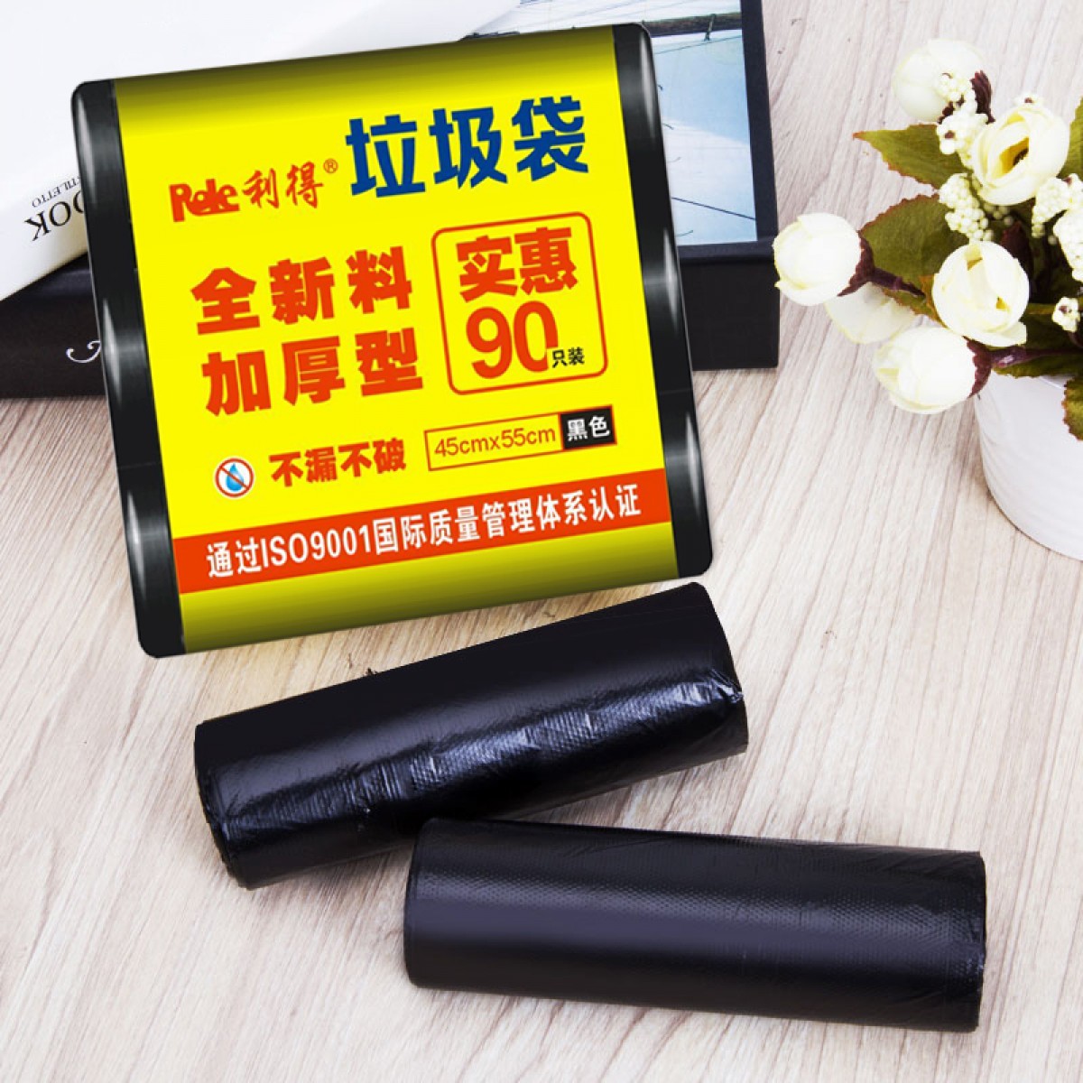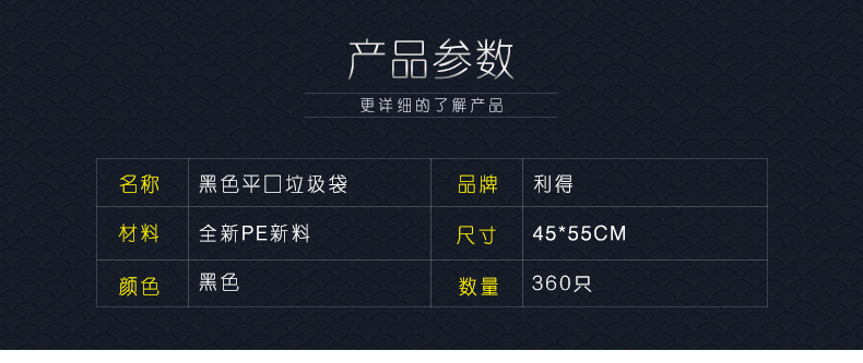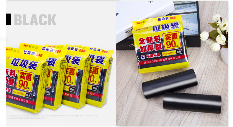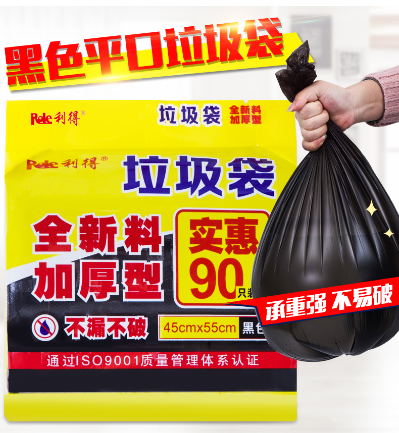 商品名称:利得 垃圾袋中号黑色加厚家用三卷装45*55cm*360只家庭桶用