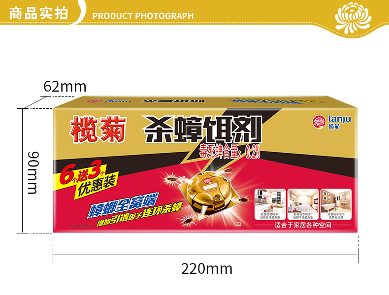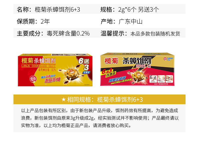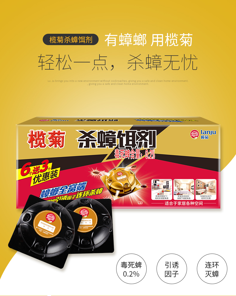 商品名称:榄菊 家用杀虫剂杀蟑饵剂蟑螂克星全窝端蟑螂药6个加送3个