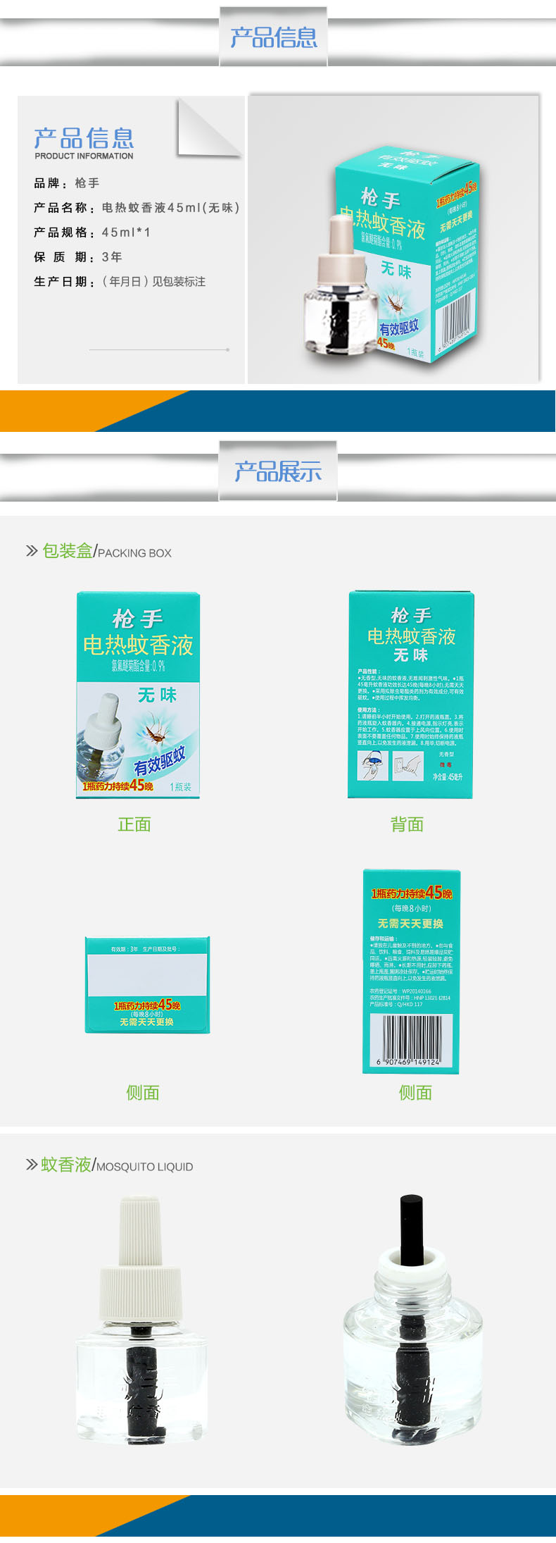 商品名称:枪手 电热蚊香液 无味 45毫升 有效驱蚊45晚