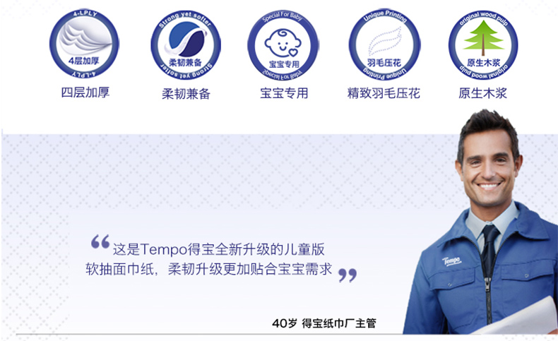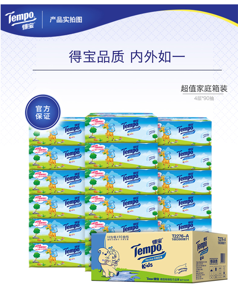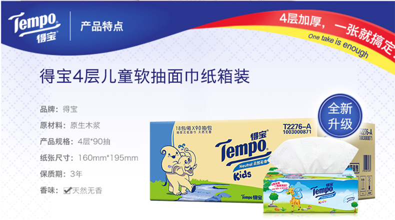 商品名称:得宝 纸巾儿童软抽90抽18包 4层加厚儿童抽纸面巾纸
