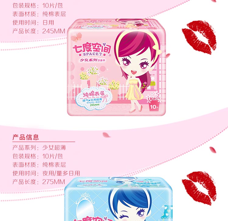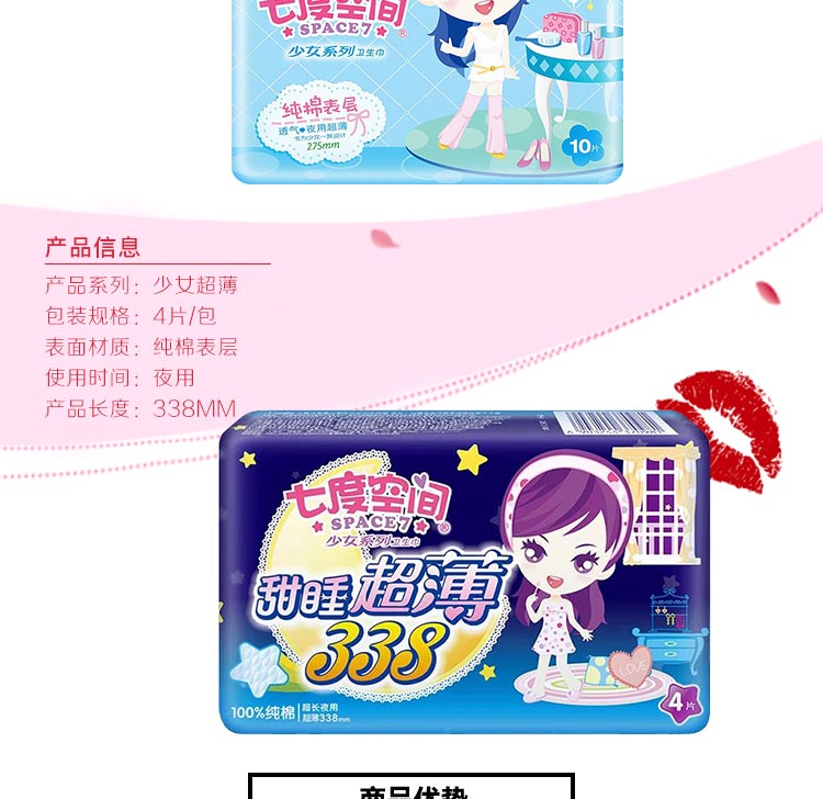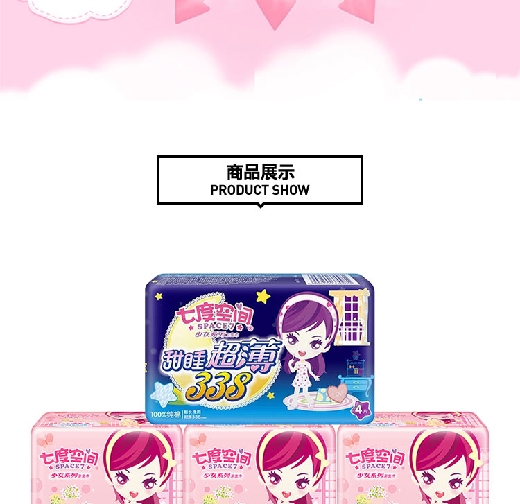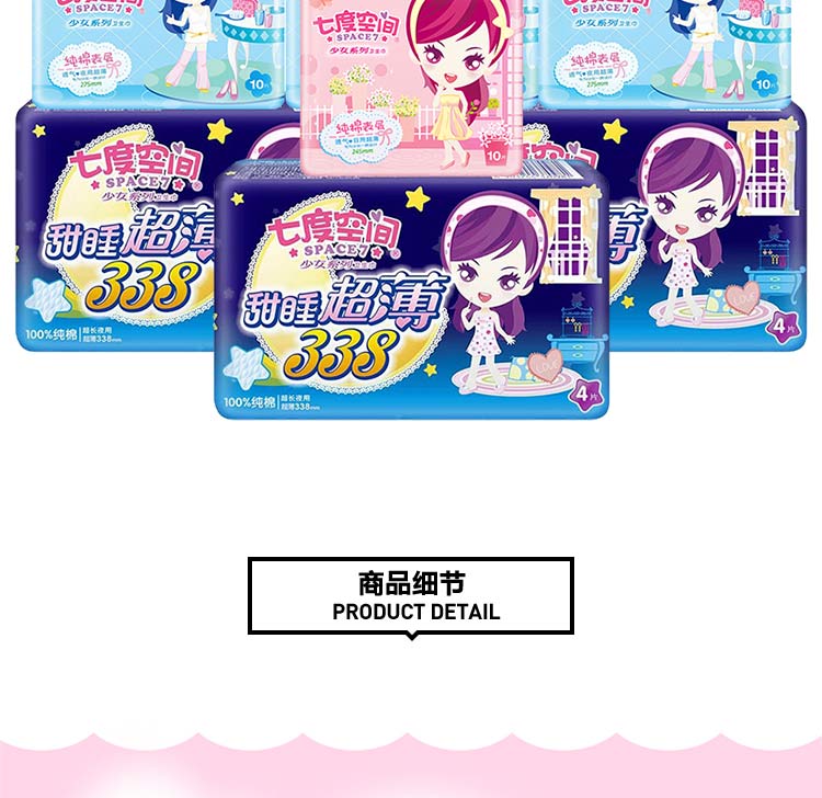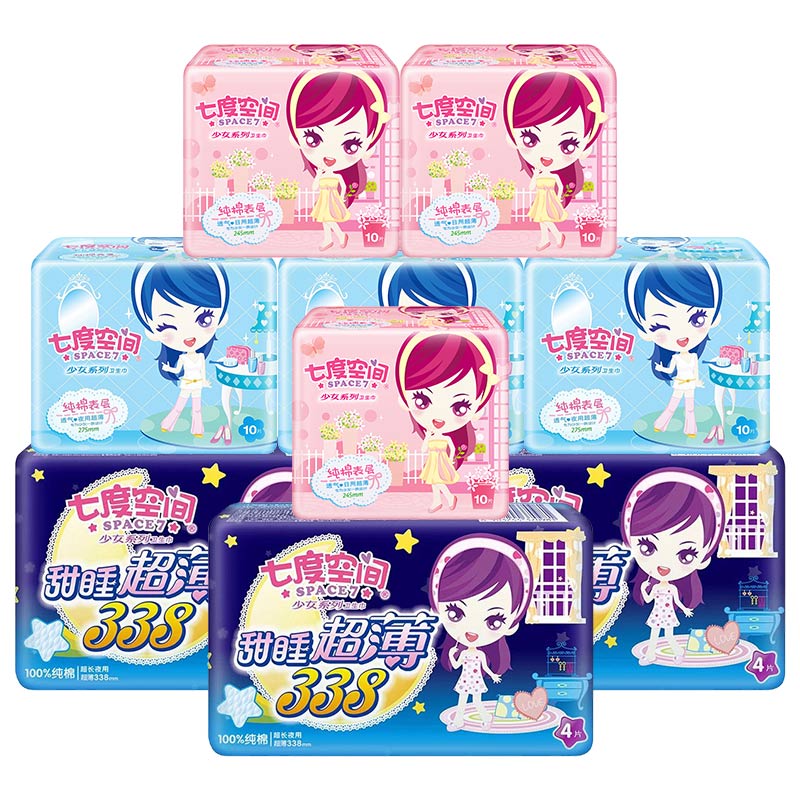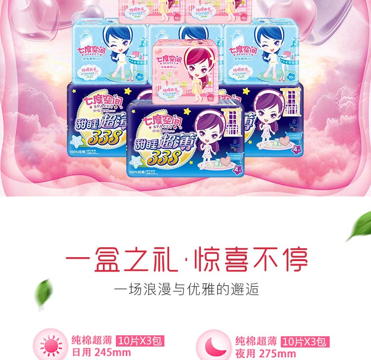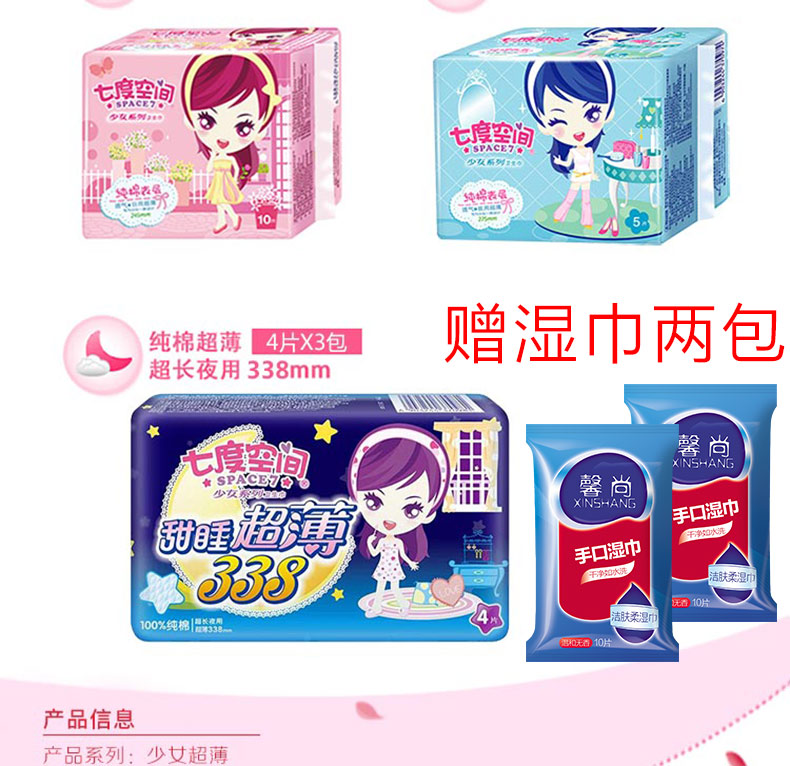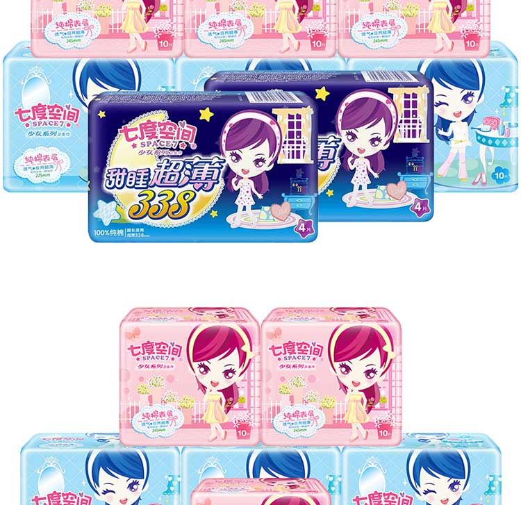 商品名称:七度空间 卫生巾纯棉超薄日用夜用绵柔姨妈巾护垫11包72片