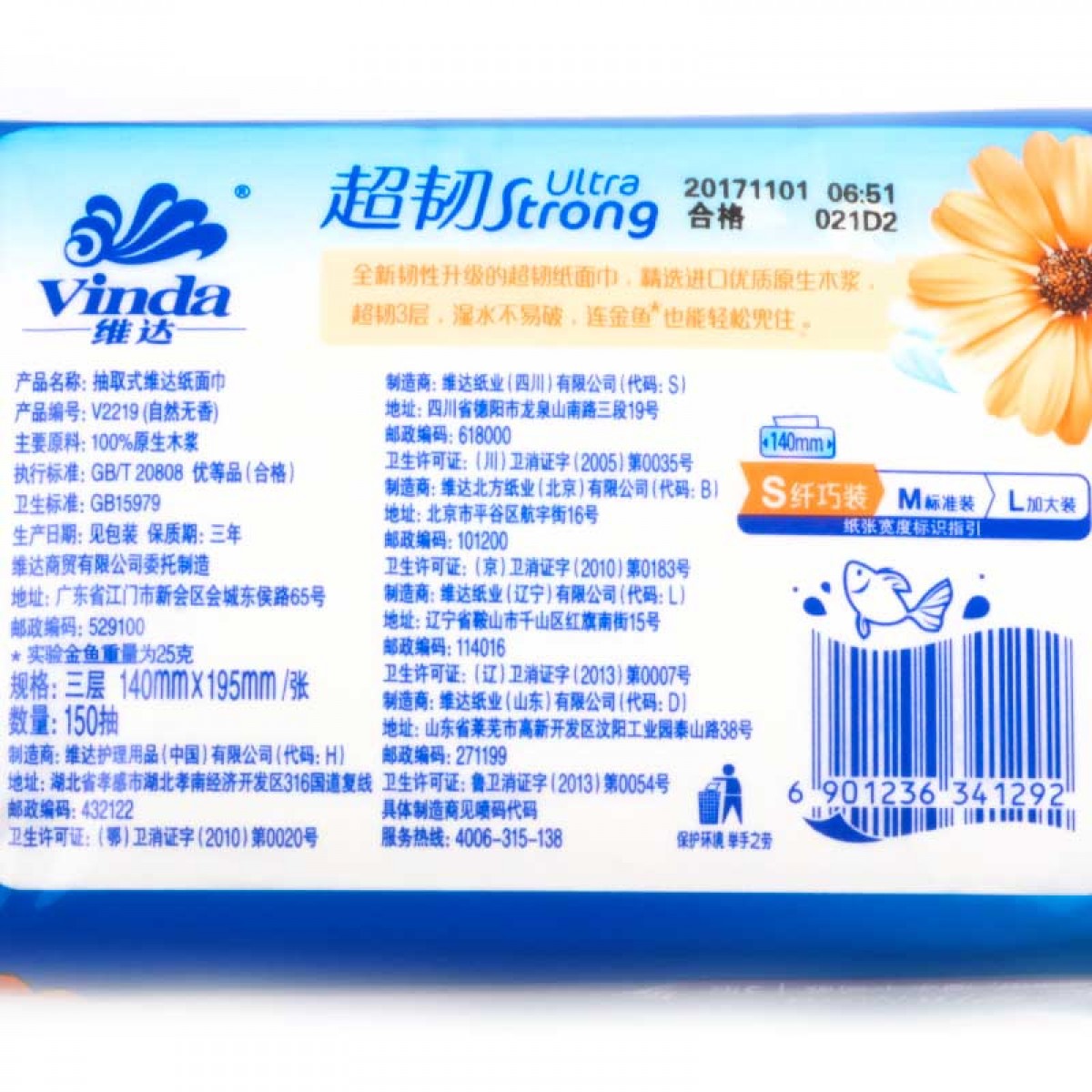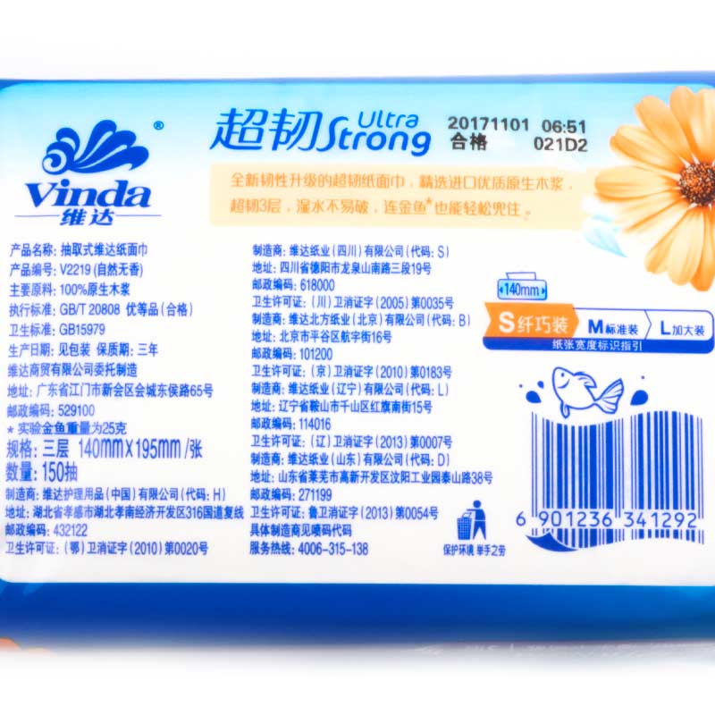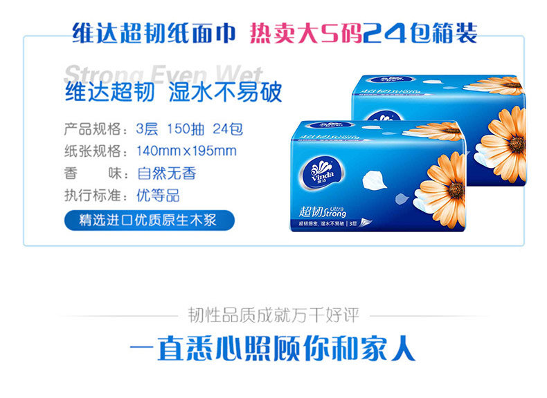 商品名称:维达 150抽共18包抽纸软抽面巾纸婴儿餐巾纸抽纸巾抽3层