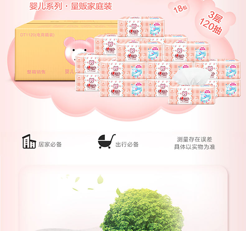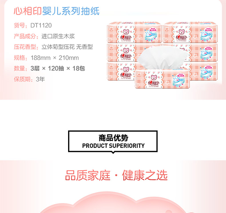 商品名称:心相印 婴儿抽纸宝宝专用面巾纸软抽卫生纸120抽*18包