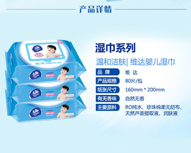 商品名称:维达 婴儿湿巾vw2002儿童卫生抽取式无香柔湿巾80片*4包