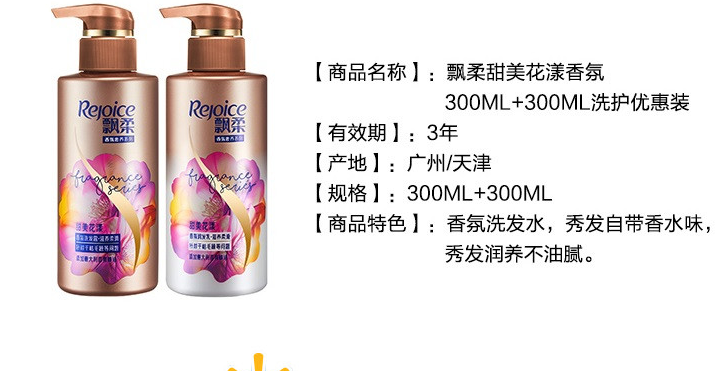 商品名称:飘柔 香氛甜美花漾洗发露洗发水300ml+润发乳/护发素300ml套装