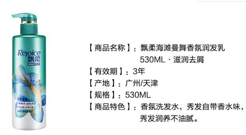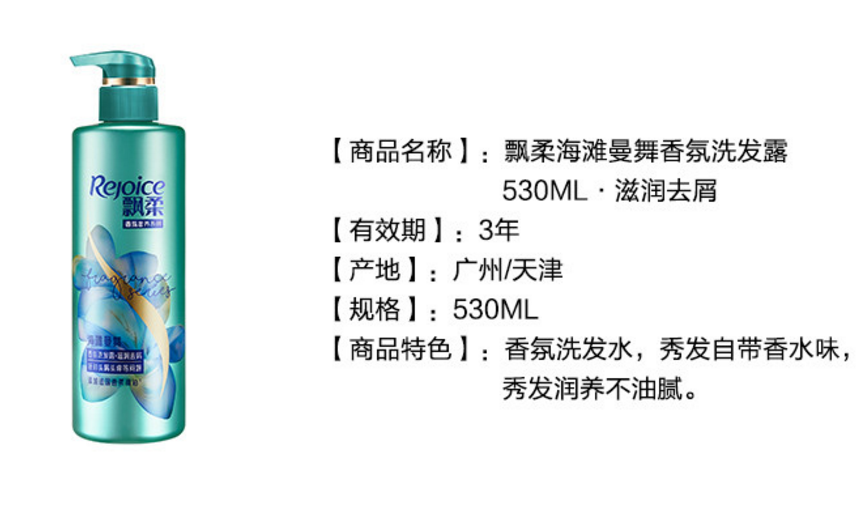 商品名称:飘柔 海滩曼舞香氛洗发露洗发水530ml+润发乳护发素530ml 洗护套装