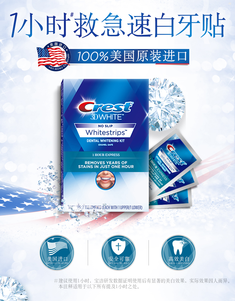 产品名称:佳洁士闪耀炫白一小时救急牙贴*