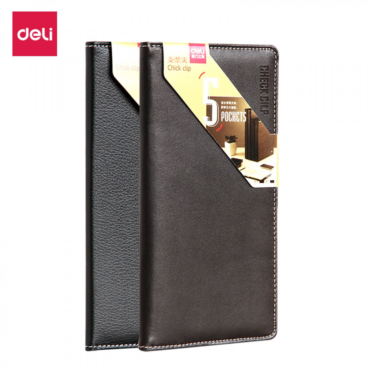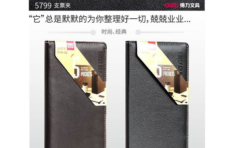 商品名称:得力 5799办公用品票据夹商务黑色支票夹时尚简约5页支票1页名片